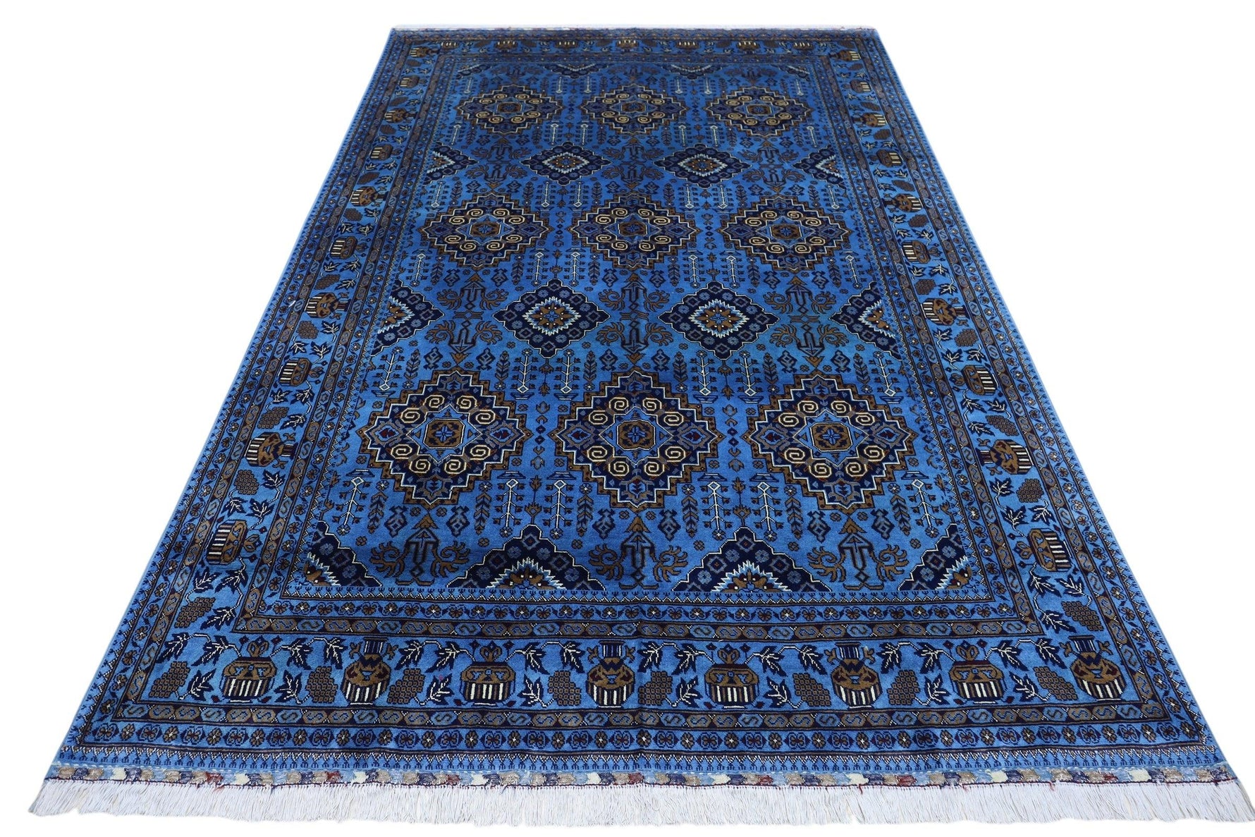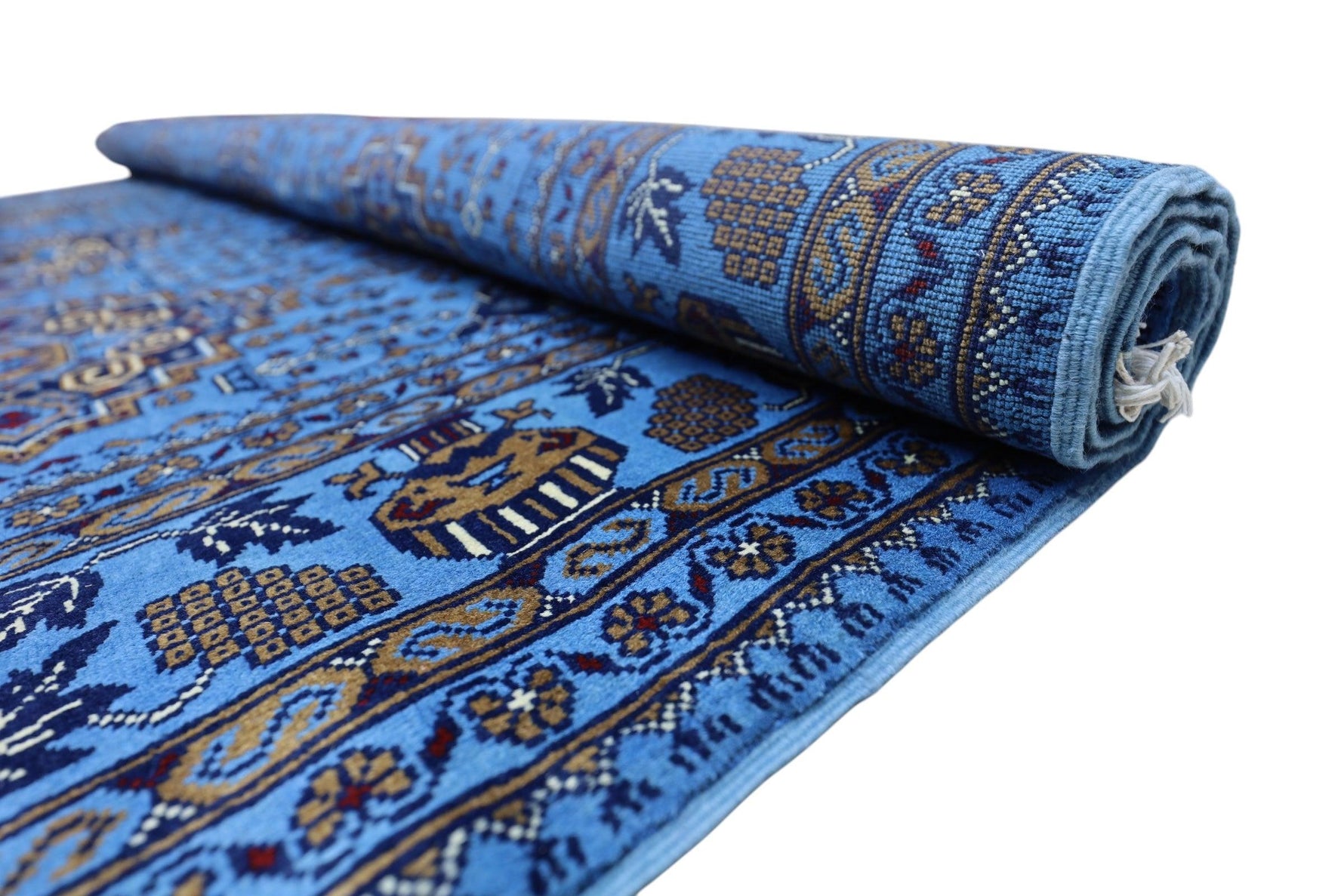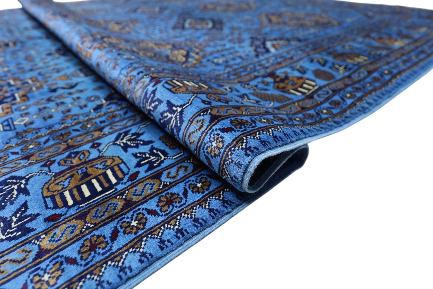 Hand-Knotted Zerkhaki Afghan Wool Area Rug – 6'6" x 10' | Elegant Blue Tones, Handmade Quality