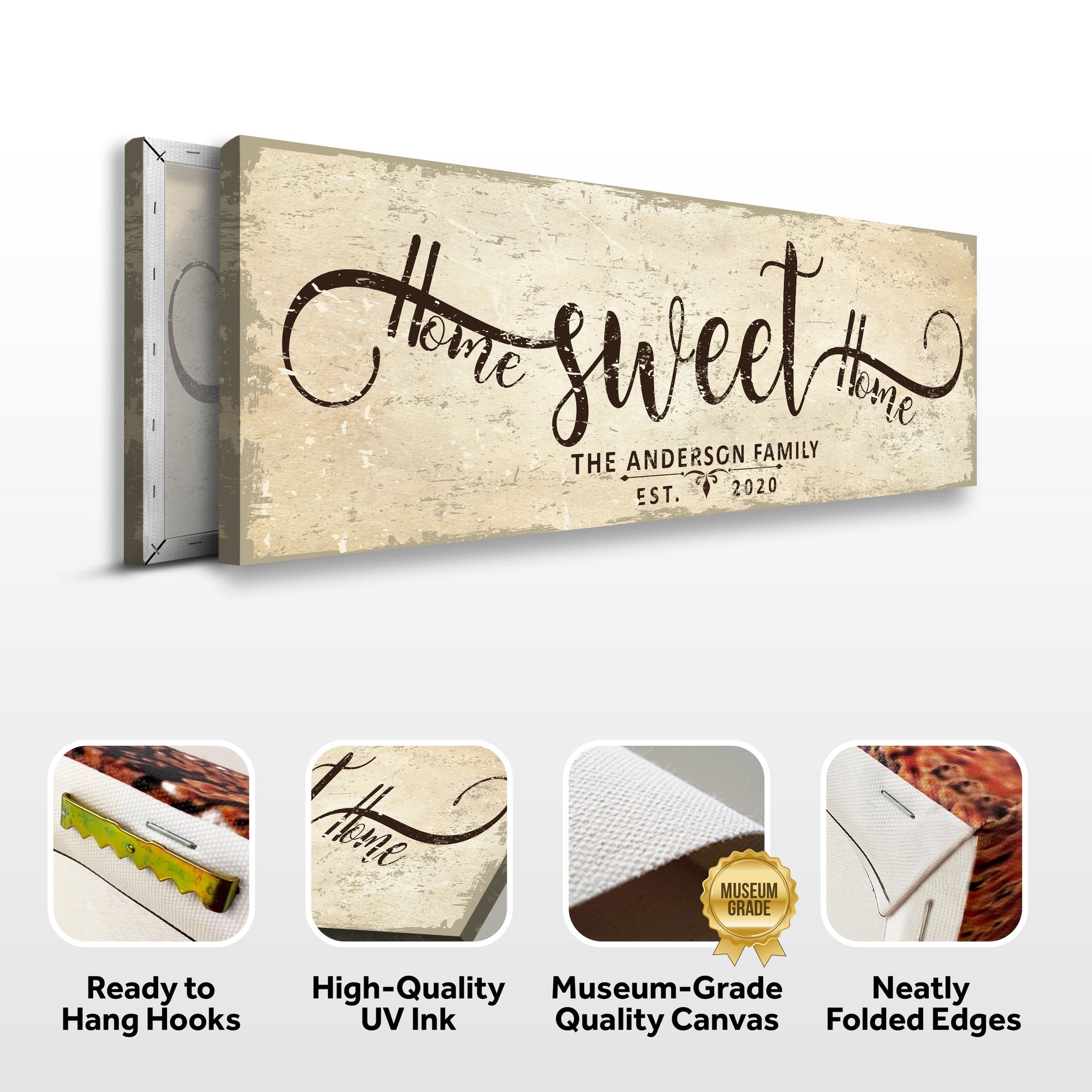 The Home Sweet Home wall art is made of high-quality canvas and is professionally printed with your choice of personalization. You can choose to add your name, address, or a special message to make this sign truly unique. Plus, the sign comes ready to hang, so you can enjoy it right away.