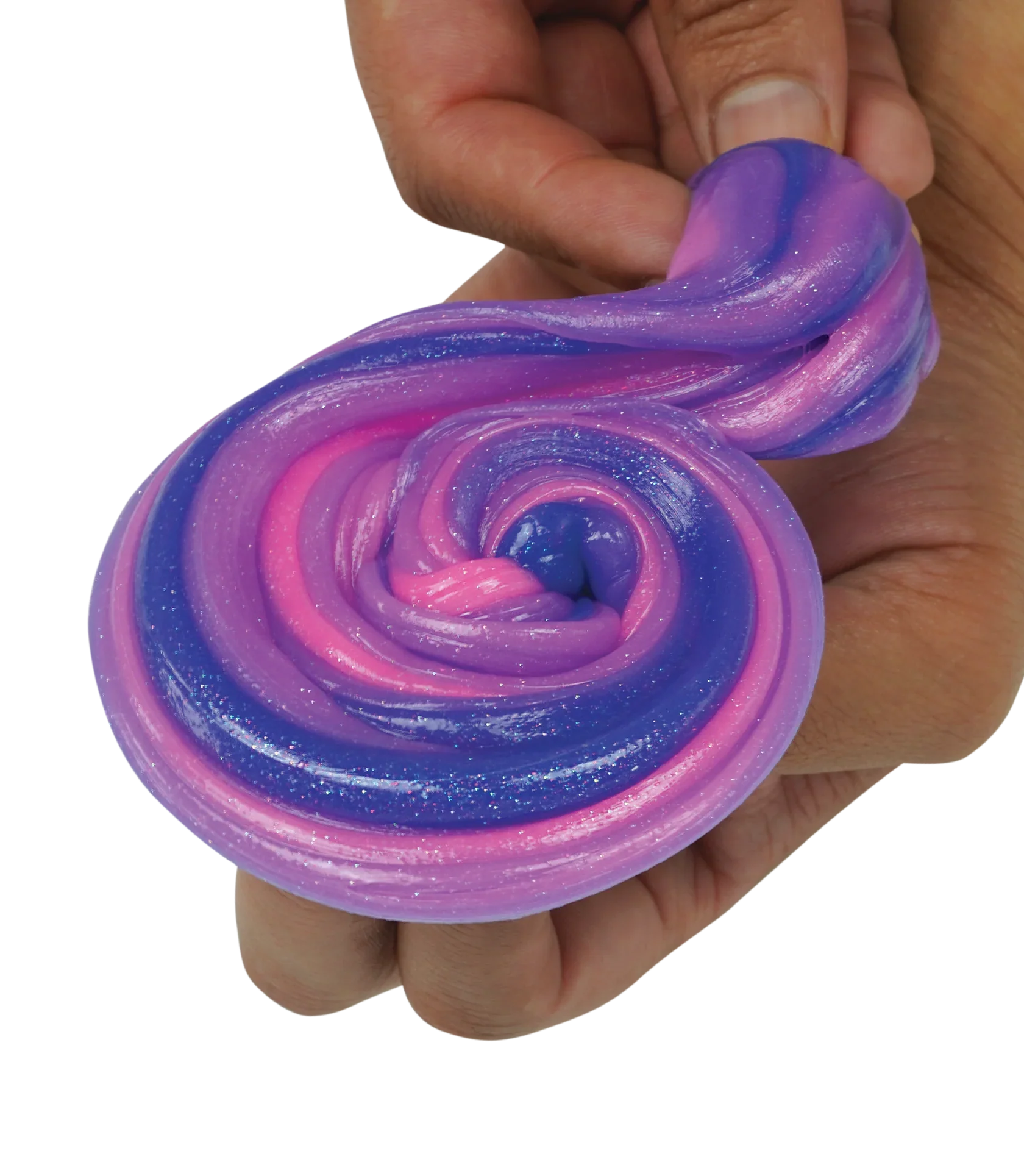 Leave Earth's atmosphere and blast off to a new galaxy! Use the heat of your hands to transform your Thinking Putty® from deep space blue, to ultraviolet purple and then to cosmic pink. Stretch and pull your way into Intergalatic space and create infinite galaxies. Vibrant colors change as you play-flecks shine and shimmer like the stars.