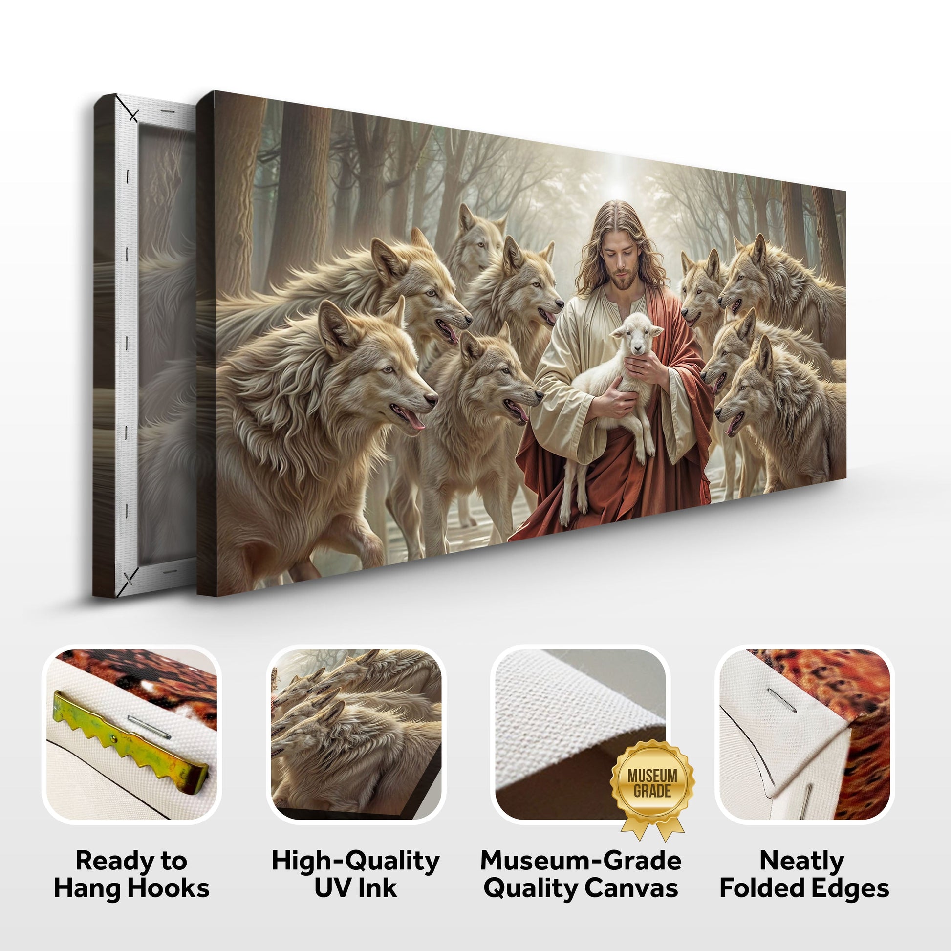 Jesus Protects The Lamb From Wolves Faith Wall Art II
