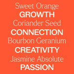 Use this blend to help nurture inspired creativity, spontaneity, passion, and expansion in the birth of new concepts. It encourages harmony, warmth, and enthusiasm in relationships. Joyful Creation helps to clear energetic blocks related to relationships and creative expression while inviting a sense of joy and enthusiasm in moving forward toward transformation