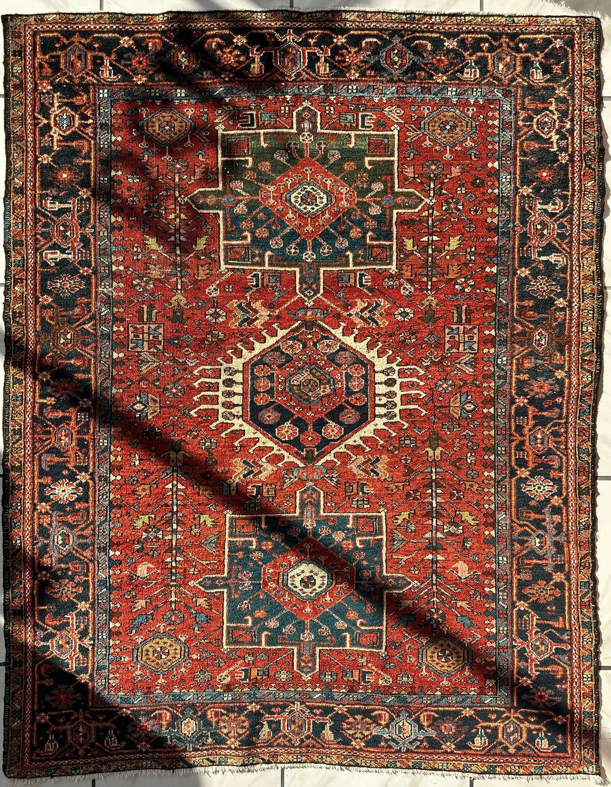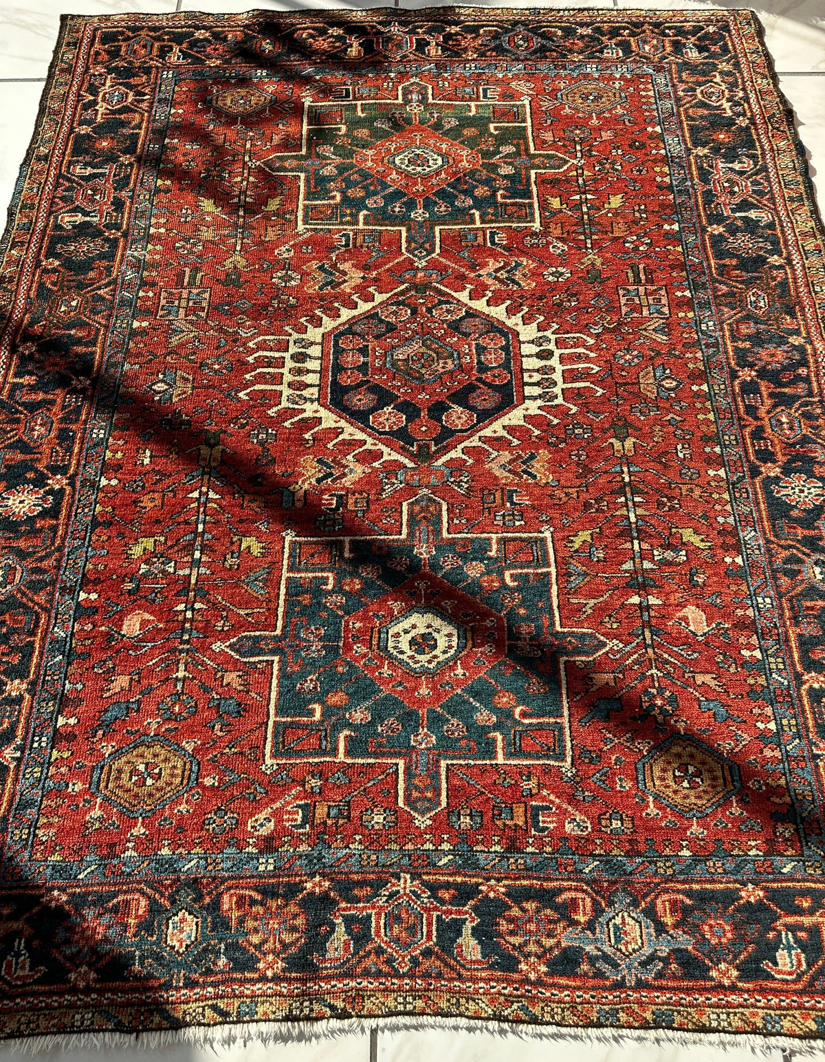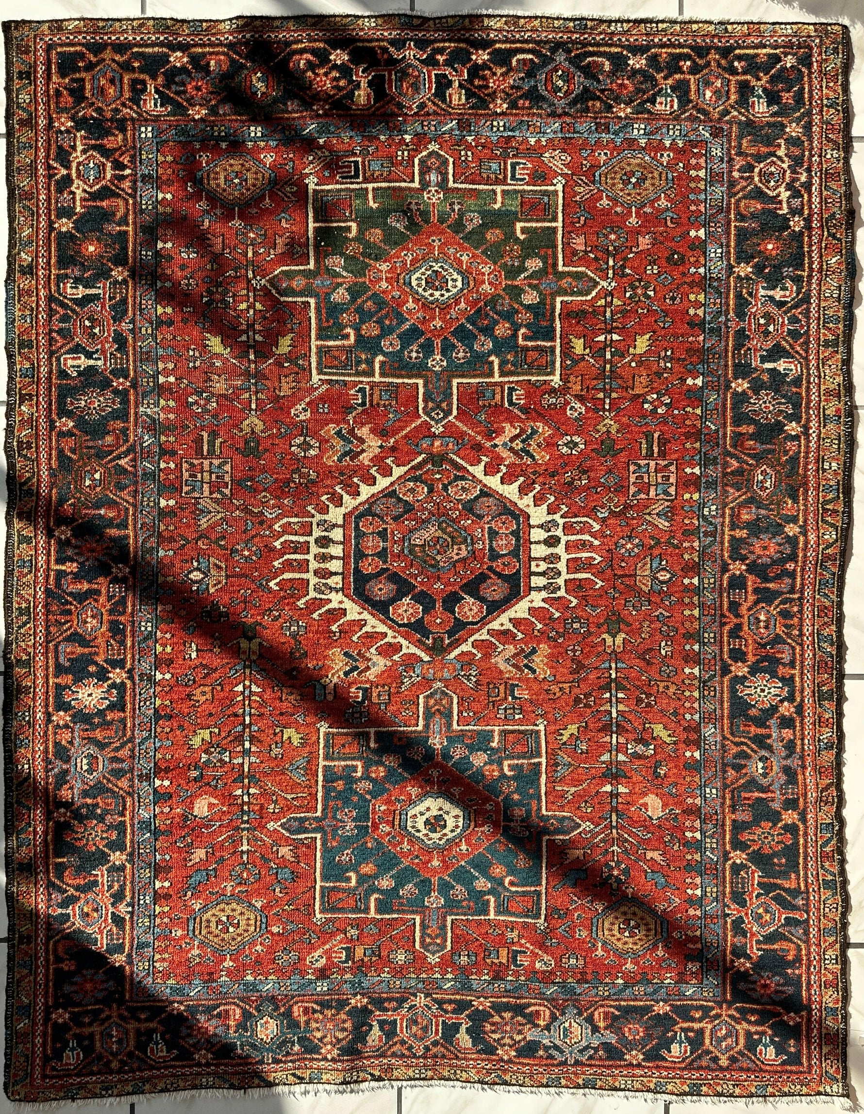 KARAJA Persian Antique Heriz Rug 4'9" x 6'