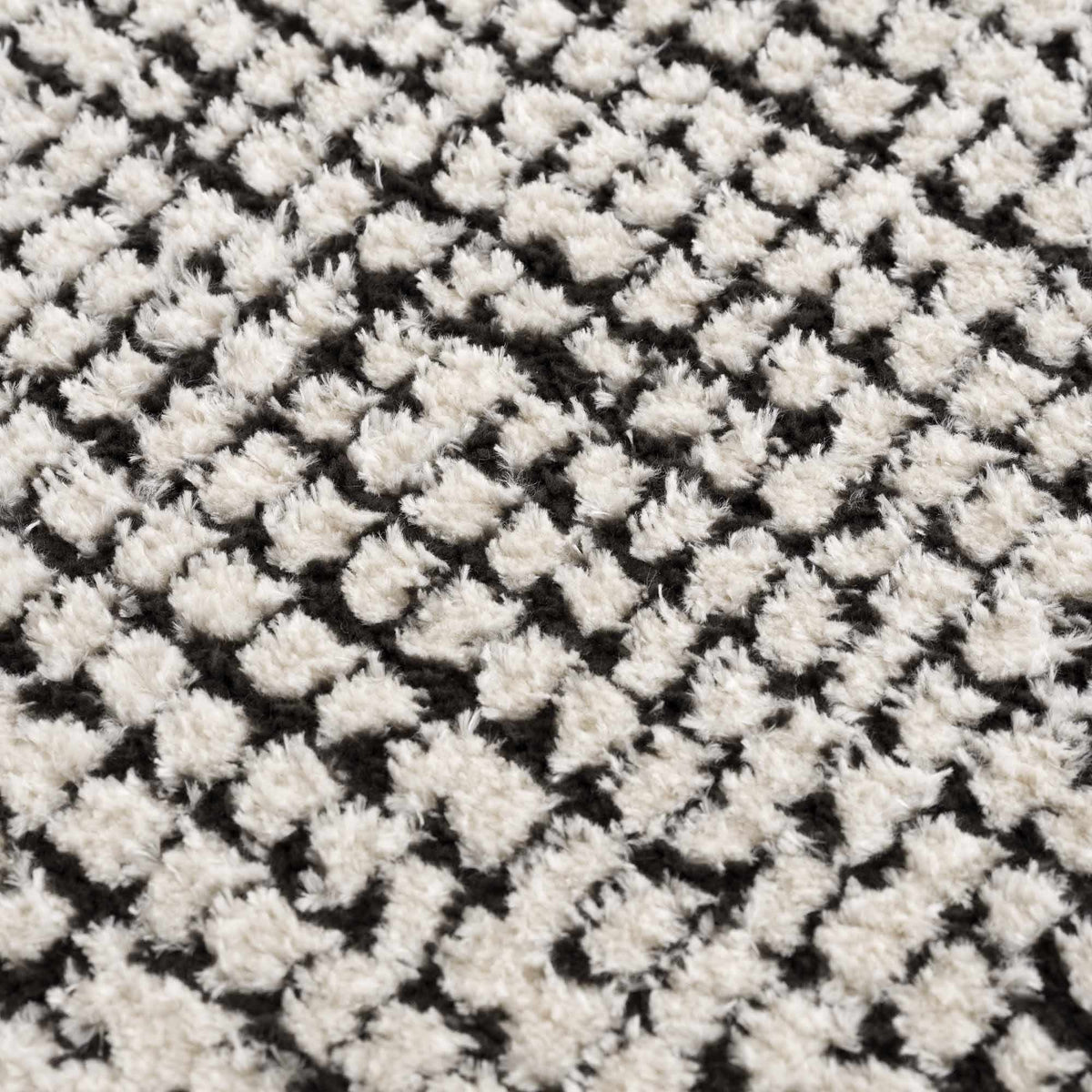 About: Add a bold statement to your space with this black and white mosaic rug. Its high pile offers luxurious comfort and a soft underfoot feel. The rug's captivating mosaic pattern creates a striking visual contrast, perfect for contemporary and classic interiors alike. This piece effortlessly combines artistic design with plush comfort, making it an ideal choice for those seeking to elevate their home decor.