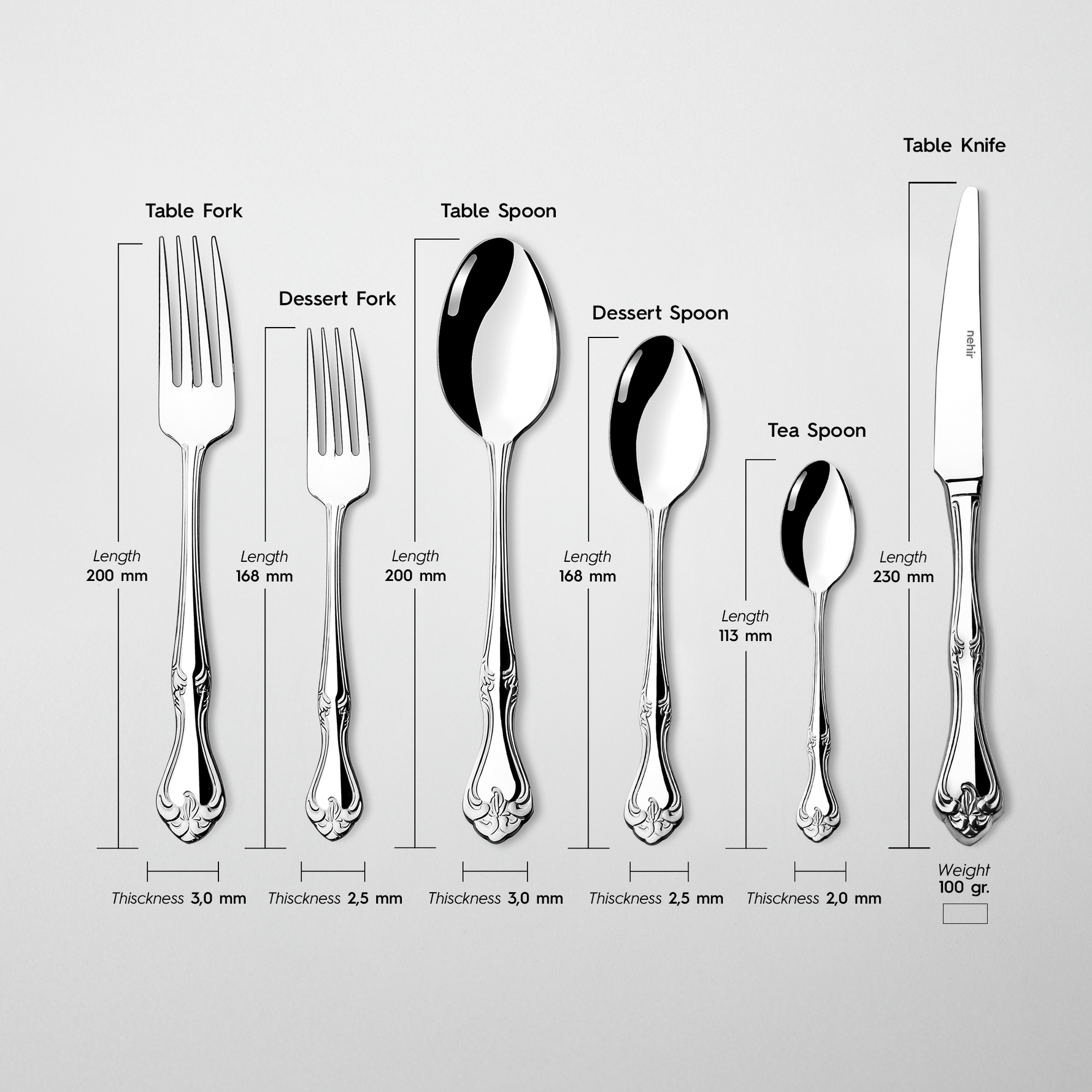 Made in Turkey: The LALEZAR Mirror Finish Cutlery Set is meticulously crafted by expert artisans at Nehir in Turkey. High craftsmanship and quality are incorporated into every piece, adding an elegant touch to your dining table.