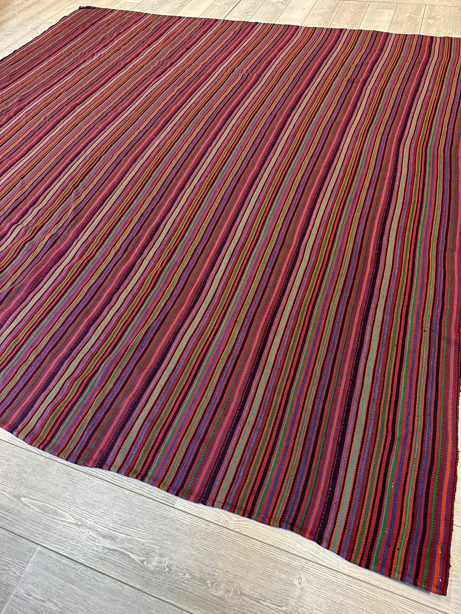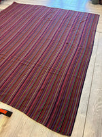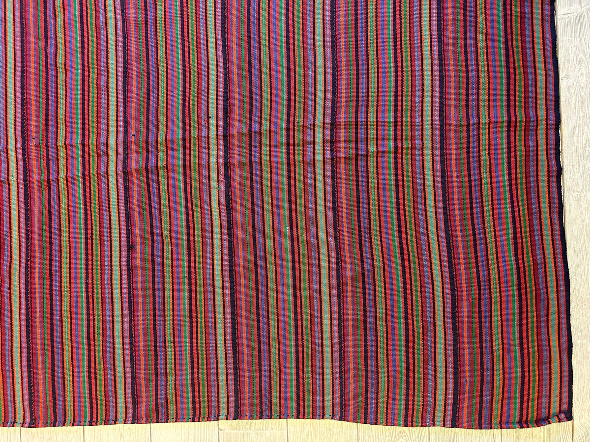 Antique Persian square rug handwoven from the finest sheep’s wool. It’s colored with all-natural vegetable dyes that are safe for humans and pets. It’s a traditional Jajm design handwoven by expert artisans. It’s a lovely square rug that can be incorporated with virtually any home interior design. It has a dimension of 5'2" x 6' which works well for living rooms, hallways and bedrooms. Jajim is similar to Kilim as a flat-woven rug but with lesser number of knots used. It’s design is almost always in horizontal or vertical lines which points to its humble origins in ancient Persia. Jajim rugs were favored as a bed cover and blanket by tribes living in the cold, mountainous regions. Thicker Jajims were used for covering horses and floors.