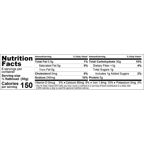 Galil is proud to offer health-conscious Lavash Wrap options that are friendly even to those with dietary restrictions. Our oven-baked flatbreads are fat-free, contain no cholesterol, and don't use any genetically modified organisms (GMOs). We also use less salt than competitors to help keep your sodium intake in check.