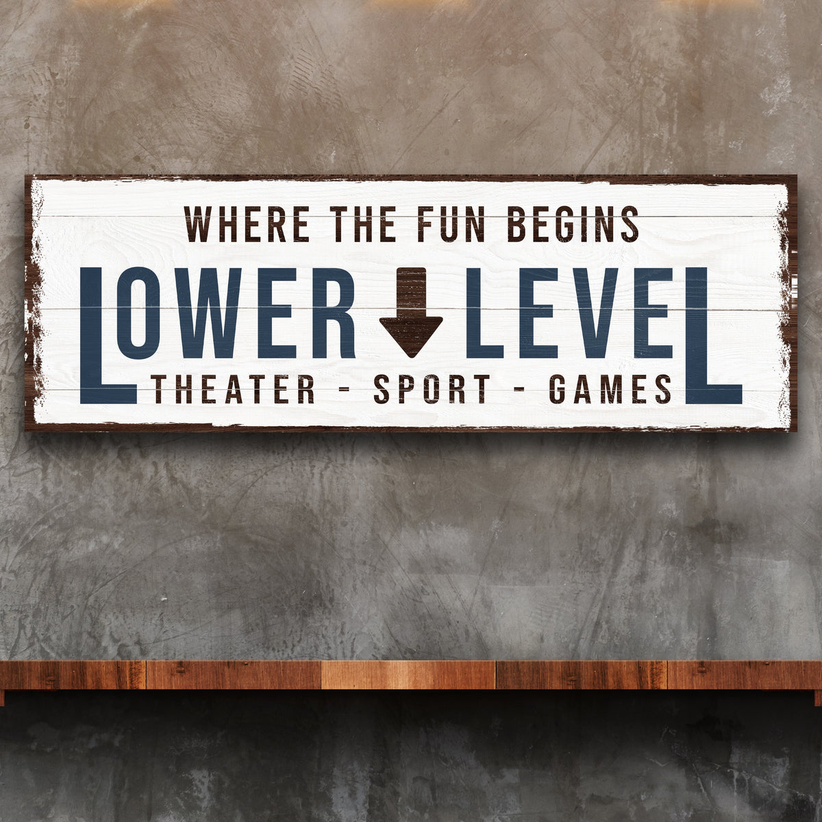This Lower Level Sign on any wall in your basement or garage, and it will look amazing as part of any interior design you have going on in those spaces. It will help set the scene for an exciting night of fun!