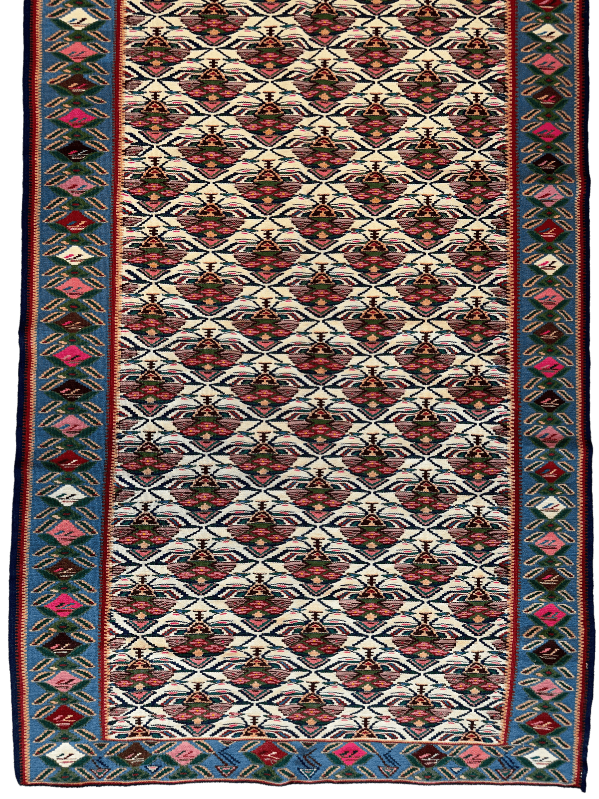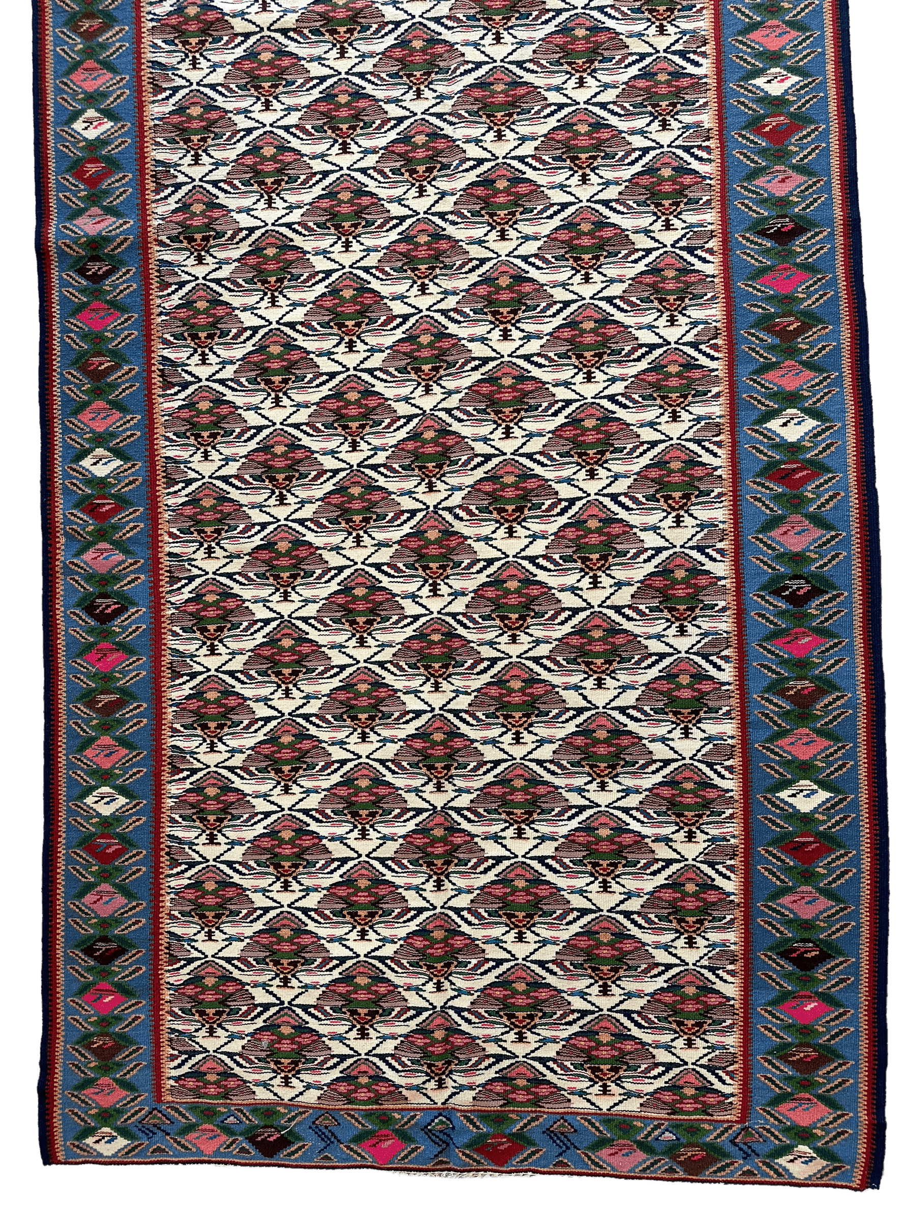 Masterpiece Vintage Persian Senneh Kilim Runner Rug 4’ x 9’