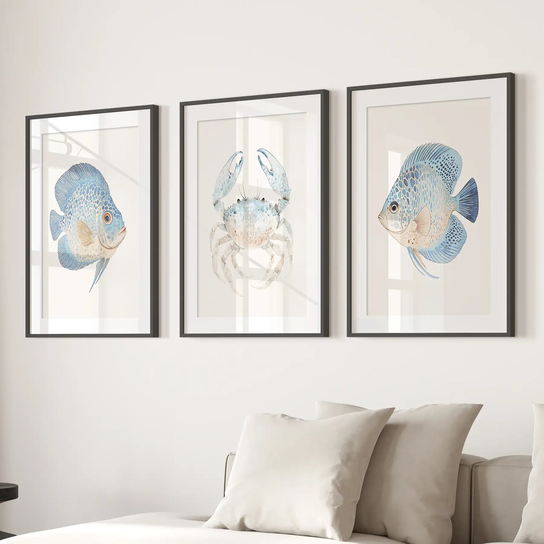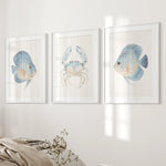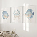 Bring the beauty of the ocean into your home with this coastal wall art set of 3. Featuring two watercolor fish and a detailed blue crab, these nautical prints add freshness and marine charm to any space. Perfect for beach houses, bathrooms, or coastal-inspired interiors.