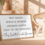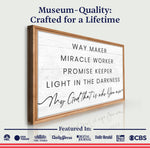 From the little things like providing me with a safe place to live and food on the table to the big things like healing my sick loved ones and guiding me through difficult times - My God is always there for me. This My God Way Maker Miracle Worker wall art is a beautiful way to express my love and gratitude for My God, and I'm so proud to display it in my home. We’re sure you will too.