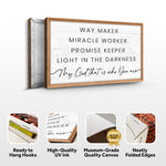 My God is a Way Maker Miracle Worker - that's what this My God Way Maker Miracle Worker canvas wall art says, and I couldn't agree more! My God has been so good to me, blessing me with more than I could ever ask for or imagine. Every time I look at this canvas wall art, it reminds me of all the ways My God has blessed me.