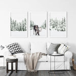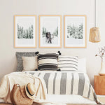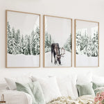 Nordic Winter Wall Art Set of 3. Snowy Forest and Moose