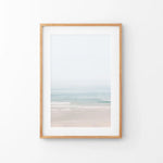 Thanks to the pastel colors, this print will perfectly decorate any interior. It depicts ocean waves and white sand. This wall decor perfectly captures the beauty of coastal life. The best solution is white frames with a mat! :)