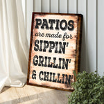 Patios Are Made For Sippin' Grillin' And Chillin' Sign
