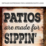 The Patios Are Made For Sippin' Grillin' And Chillin' Wall Art will look great on any patio, but it's especially great for patios with an outdoor kitchen or grill area. It's also great for those who love spending time outdoors with friends and family!