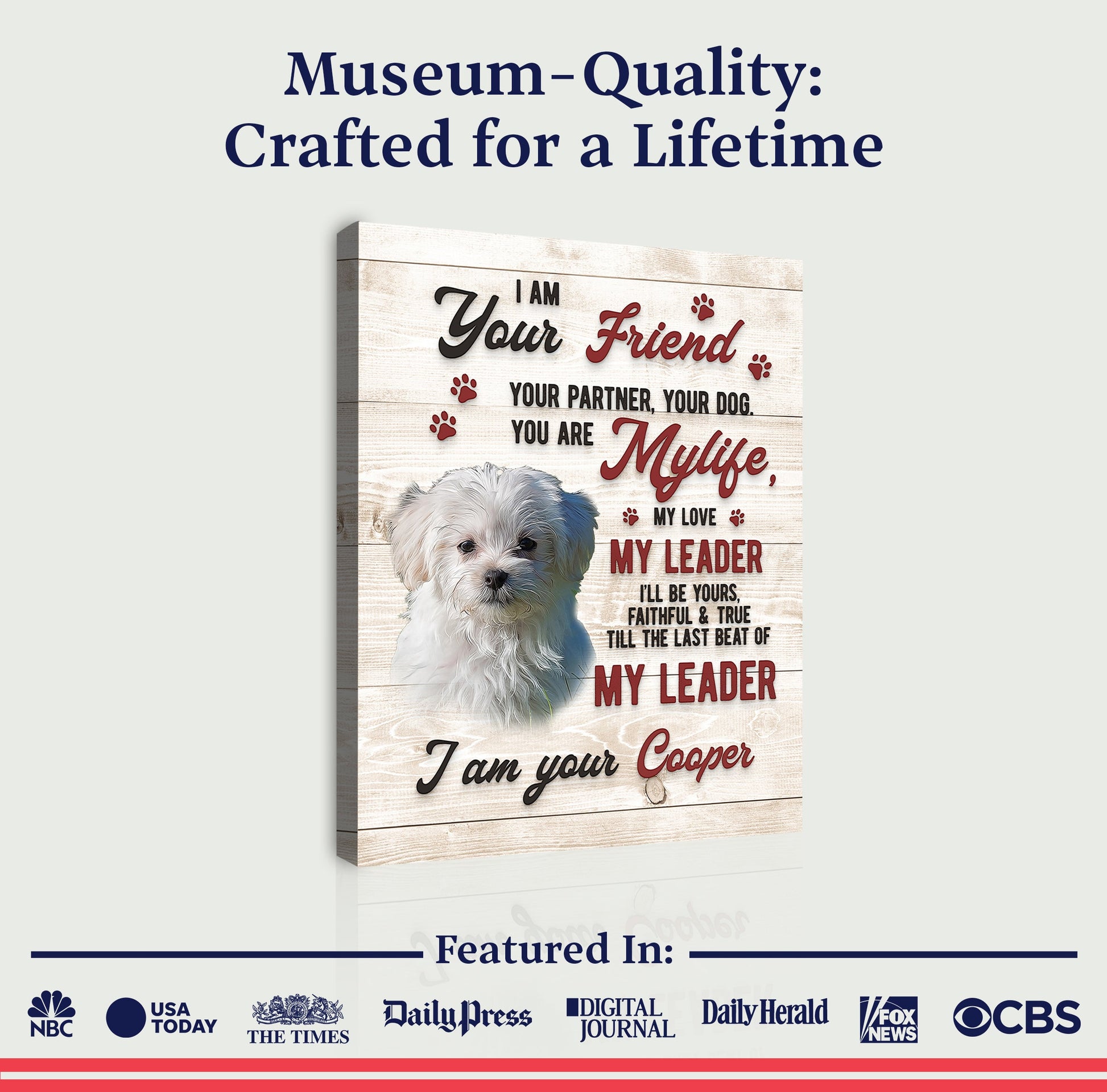 Let the memory of your beloved family member live on with this custom dog memorial pet loss frame portrait. Take comfort in the elegant wood patterns that will complement any photo canvas for any home décor style. Hang this passing gift in your pet's favorite room as a fitting tribute to the happy memories that you once shared.
