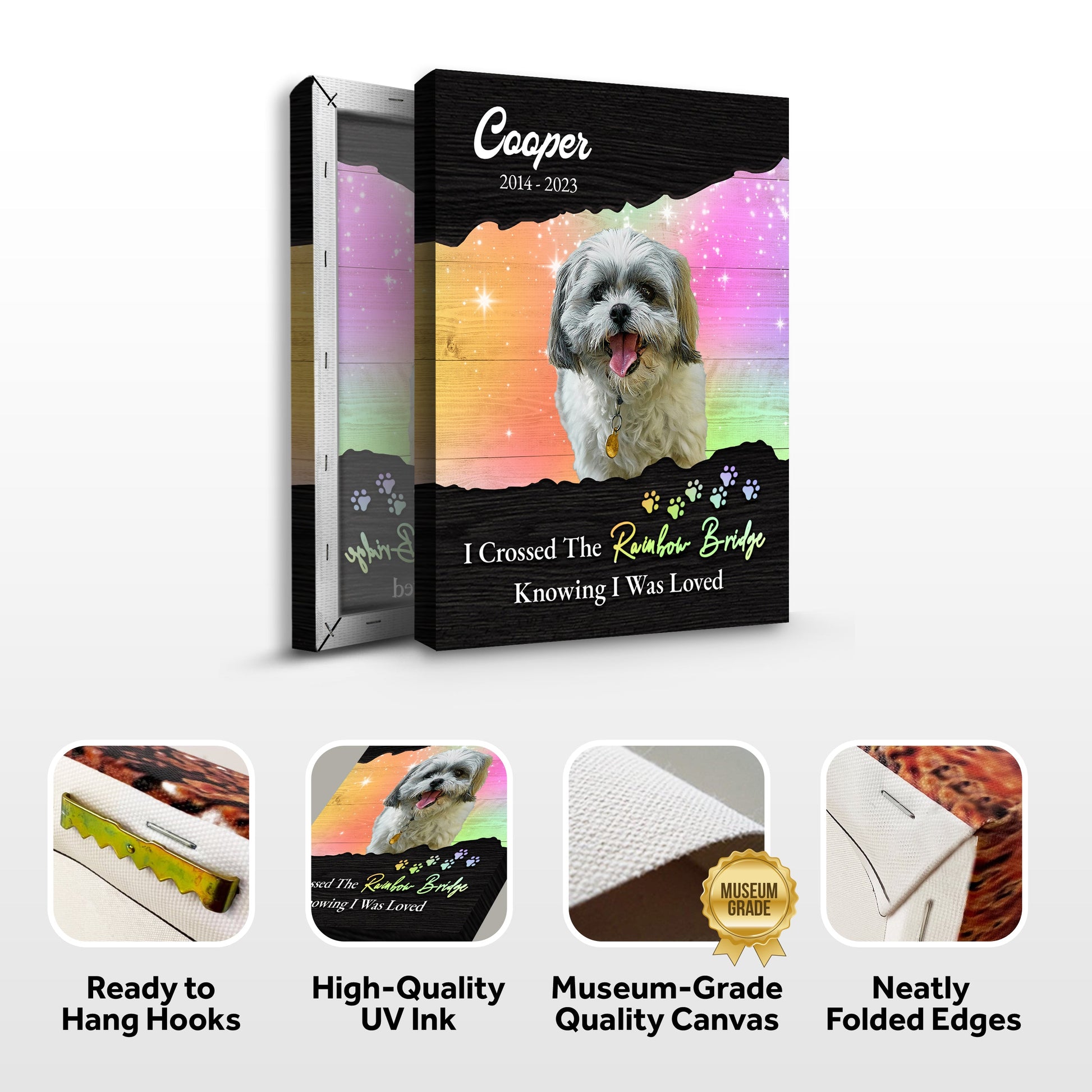 Let the memory of your beloved family member live on with this custom dog memorial pet loss frame portrait. Take comfort in the elegant wood patterns that will complement any photo canvas for any home décor style. Hang this passing gift in your pet's favorite room as a fitting tribute to the happy memories that you once shared.