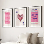 Preppy Pink Girly Poster Set of 3 Wall Art Decor