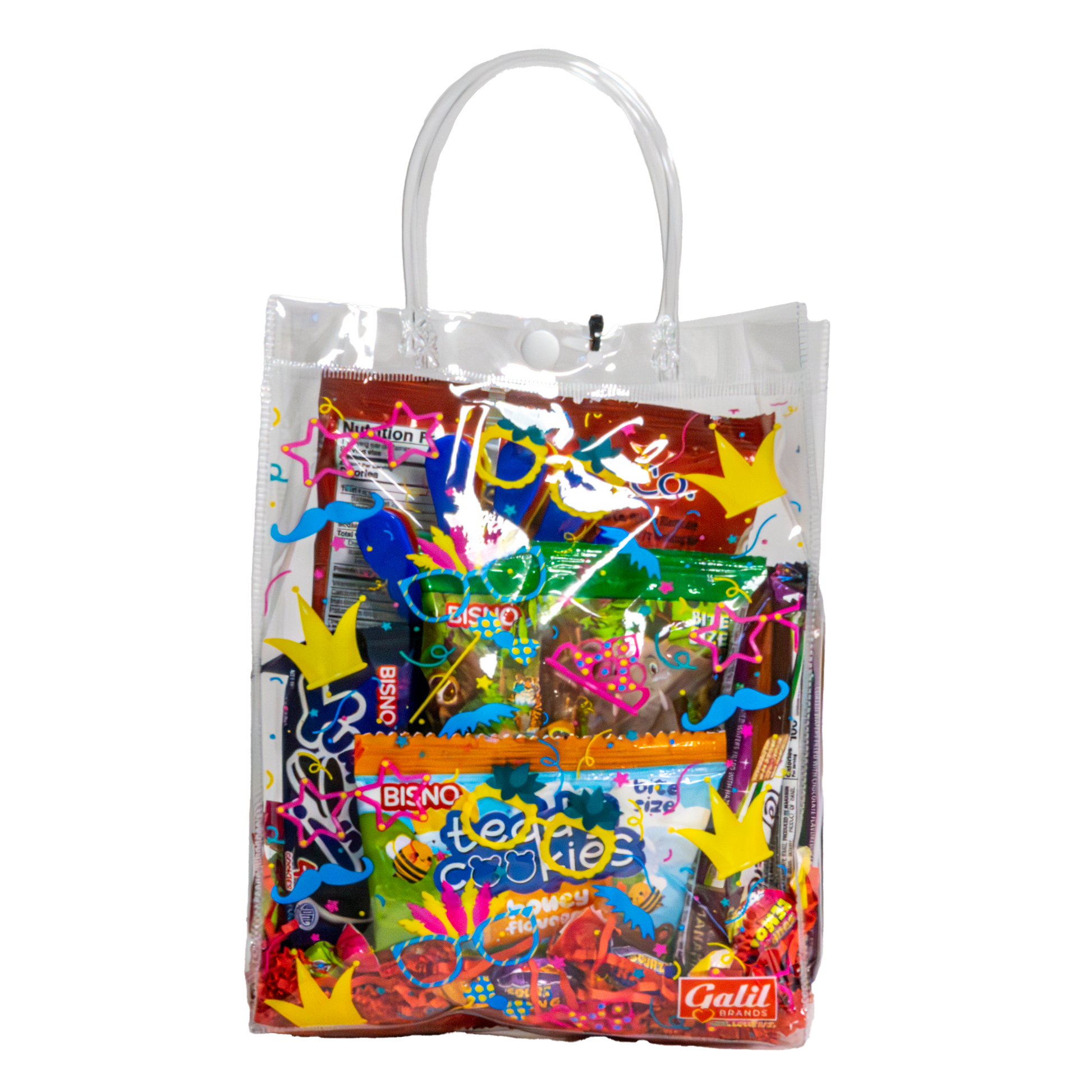 Once the treats are gone, the reusable pouch becomes a handy accessory for storing school supplies, small toys, or other essentials. This is the ultimate way to spread Purim cheer with a little something for everyone. Neatly packed in a minimalist clear pouch, the snacks include: