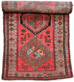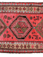 This Only One of a kind old Caucasian rug has amazing natural dyes and is just shining. Stunning colors and a great choice for your hallways. The change in color seen in the photo is abrash.