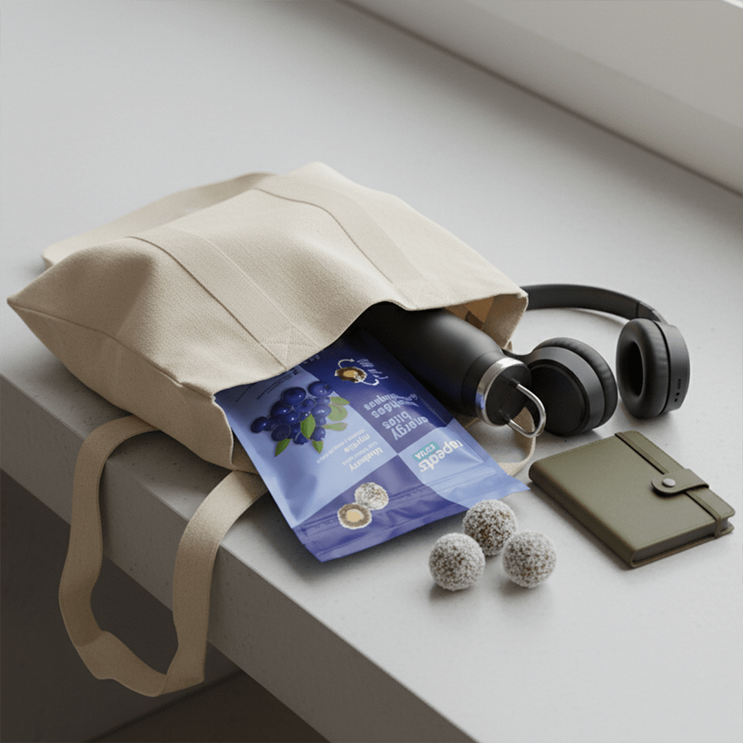 Ingredients: Puréed dates, Date juice, Puréed hazelnuts, Cashew, Pea protein concentrate, Dried currants, Almonds, Desiccated coconut, Dried blueberries, Inulin, Dried plums.