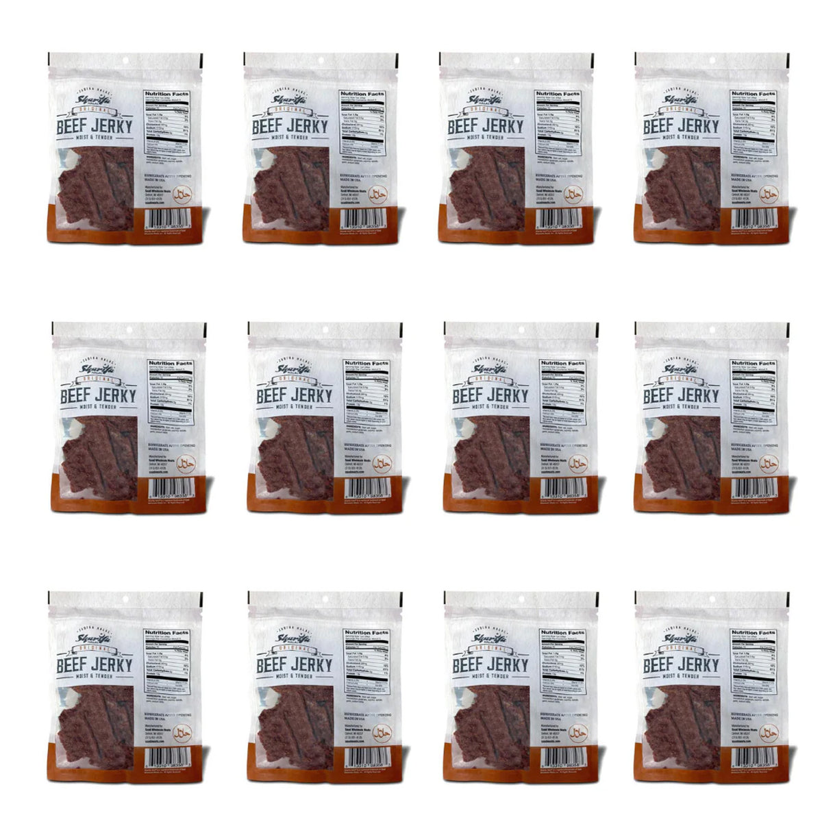 SHARIFA HALAL BEEF JERKY, ORIGINAL, (1 CASE) (12- 2.85 OZ. BAGS) – GREAT EVERYDAY HALAL JERKY BEEF MEAT SNACK, 100 % REAL ZABIHA HALAL BEEF, 13G OF PROTEIN, 70 CALORIES, 0G TRANS FAT, & 2G OF CARBOHYDRATES BRAND: SHARIFA HALAL