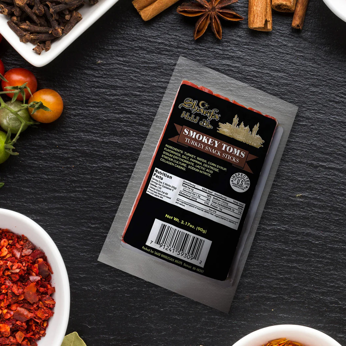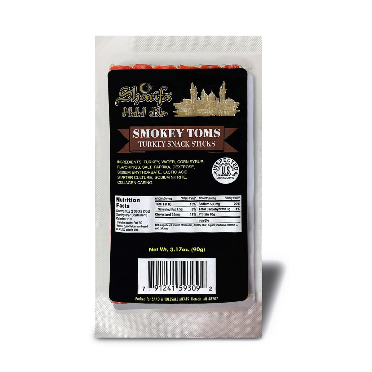 Sharifa Halal Smokey Toms Turkey Snack Sticks, (3) 3.17 oz. Package – Great Everyday Halal Turkey Snack, 100 % Real Zabiha Halal Turkey, 10g of Protein, 110 Calories, & 3g of Carbohydrates