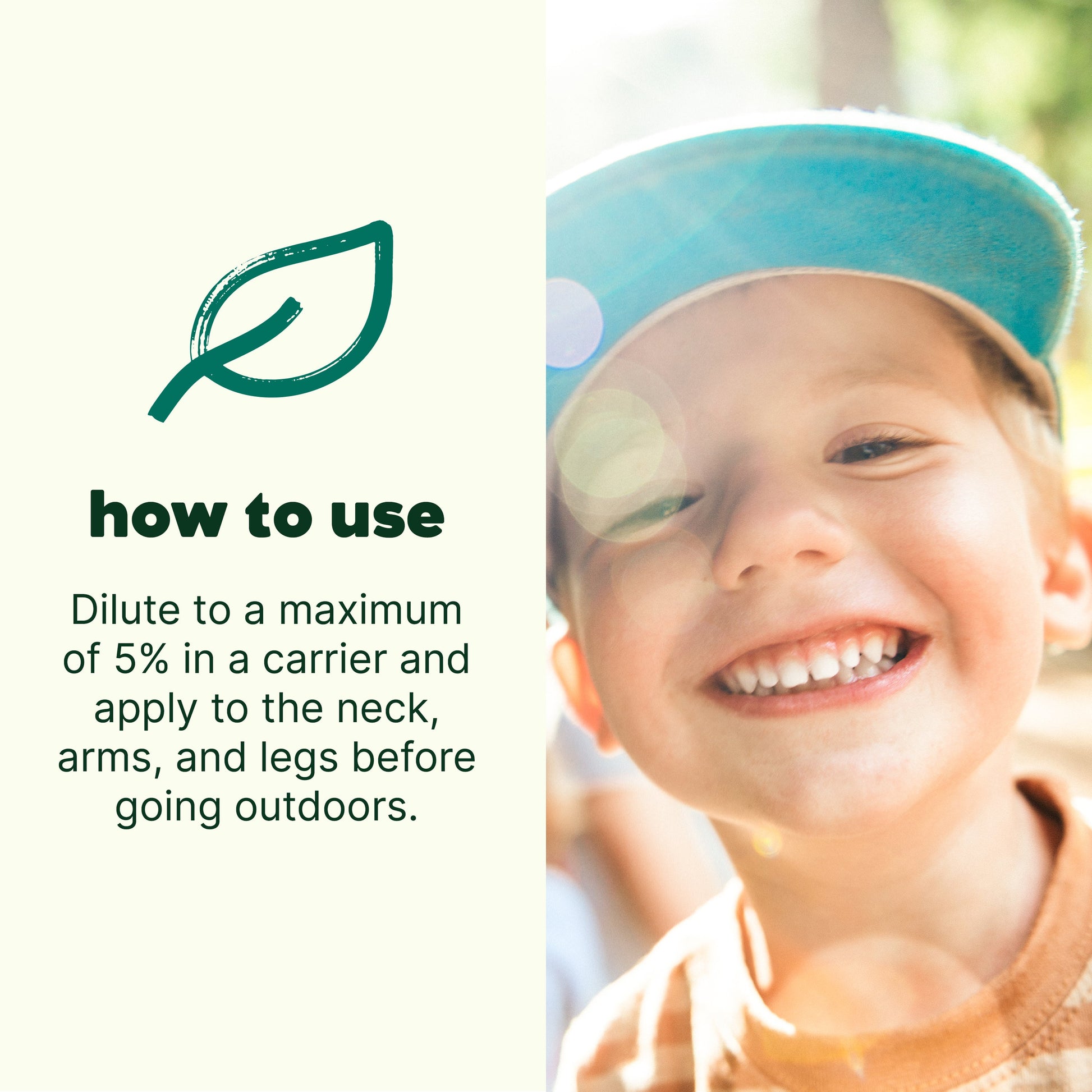 Nothing beats the great outdoors until you are surrounded by pesky, unwanted visitors that can leave the skin itchy and the plans ruined. At Plant Therapy we want you and your little ones to enjoy your outdoor excursions without the worry. Shield Me was created with your whole family in mind using the 100% pure, undiluted essential oils of Citronella, Pink Grapefruit, Bourbon Geranium, Rosalina, and Patchouli. These essential oils together can help create a natural, effective barrier that will shield you and your child from nature's outdoor annoyances. Take Shield Me on all of your family's outdoor excursions to enjoy the day without the unwanted visitors!