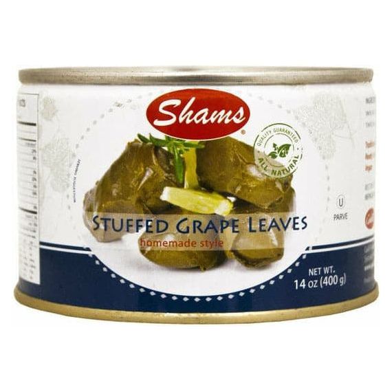 Shams Home-made Style Stuffed Grape Leaves offer that handmade taste and feel. They make for a quick and easy meal or the perfect appetizer or cocktail dish. Best of all, they are made with completely all-natural ingredients. Ready to eat right out of the can, Shams Stuffed Grape Leaves are a staple for every kitchen cupboard.