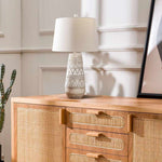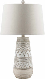 Tan and Cream Resin Lamp with White Linen Table Lamp
