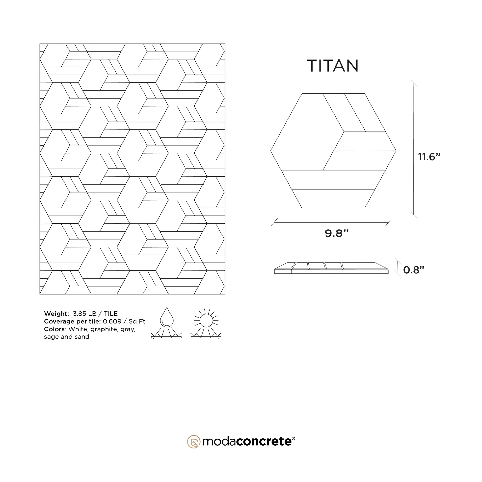 Make a bold statement with TITAN Concrete Wall Tiles. Featuring a hexagonal design with strong, geometric lines, TITAN brings a sense of power and structure to any space. Ideal for accent walls, entryways, or modern industrial designs, these tiles add a unique architectural element. Built for durability, TITAN tiles are as strong as they are striking, making them perfect for both residential and commercial applications.