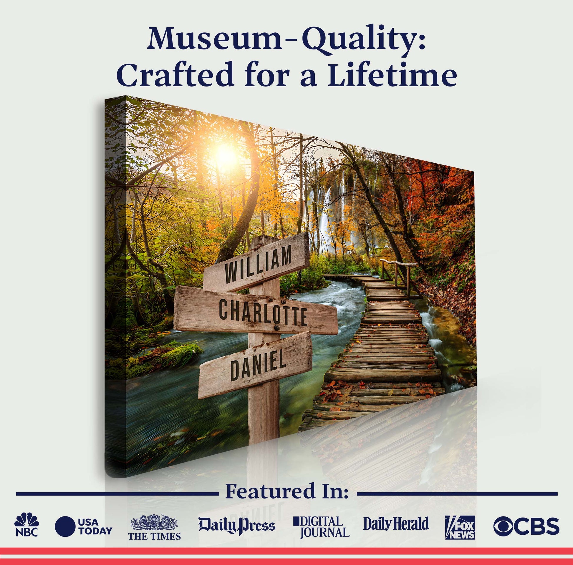 You can customize the Family Names canvas print with your choice of words and names, as well as the image you want in the background. The fonts used and the color scheme are also customizable, so you can have something entirely different.
