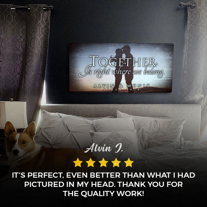 Start your forever off on the right foot with a together sign! We all want to remember our love for each other long after the honeymoon phase has passed. This stunning together canvas wall art will ensure you never forget your promise of forever when it's beautifully displayed in one piece!