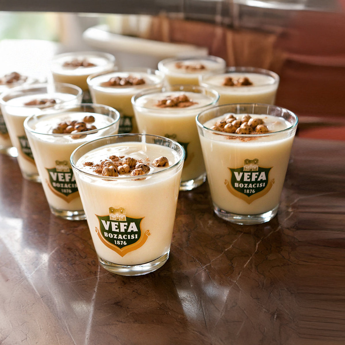 Vefa Boza, crafted by the world-famous Vefa Bozacısı, is known for its smooth, velvety texture and mildly sweet-tangy flavor.