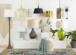 Material: Body: Glass / Base: Aluminum / Shade (Outside): Cotton / Shade (Inside): Cotton / Finial: Aluminum