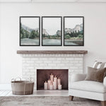 Yosemite Valley is part of Yosemite National Park in the western Sierra Nevada mountains of Central California. Incredible photography of its mountain lake was divided into 3 pieces to take its place in your room. Look at the option of a larger size. The most popular option for this set is black frames and canvas prints.