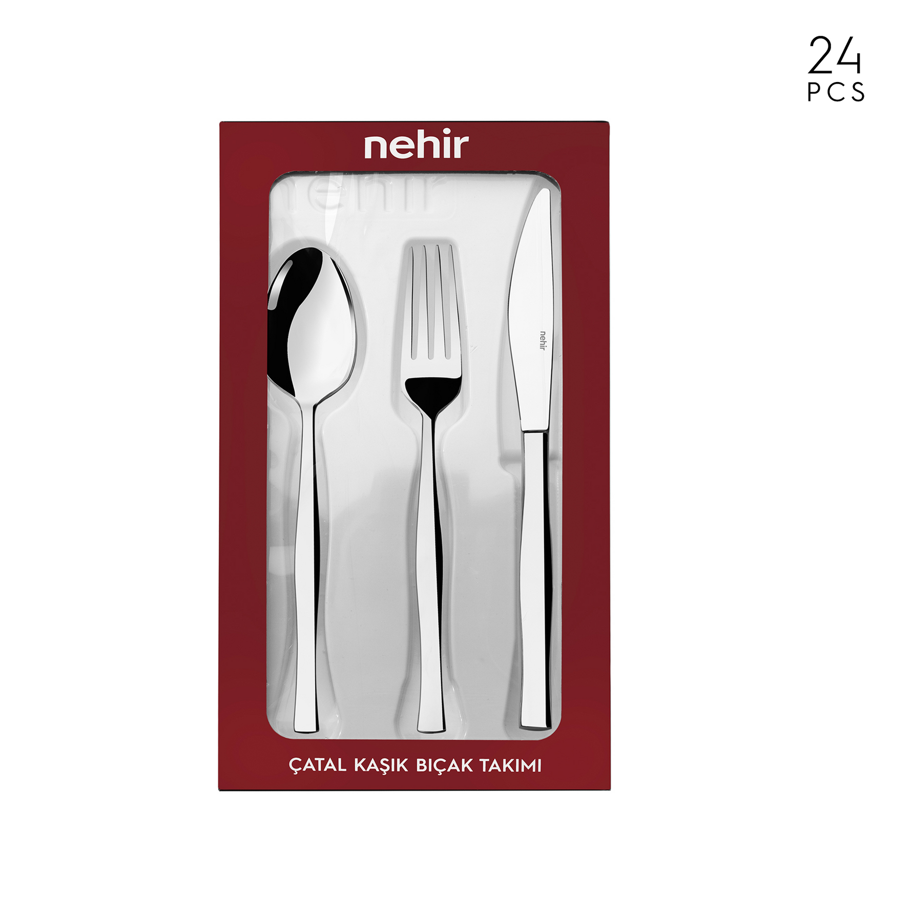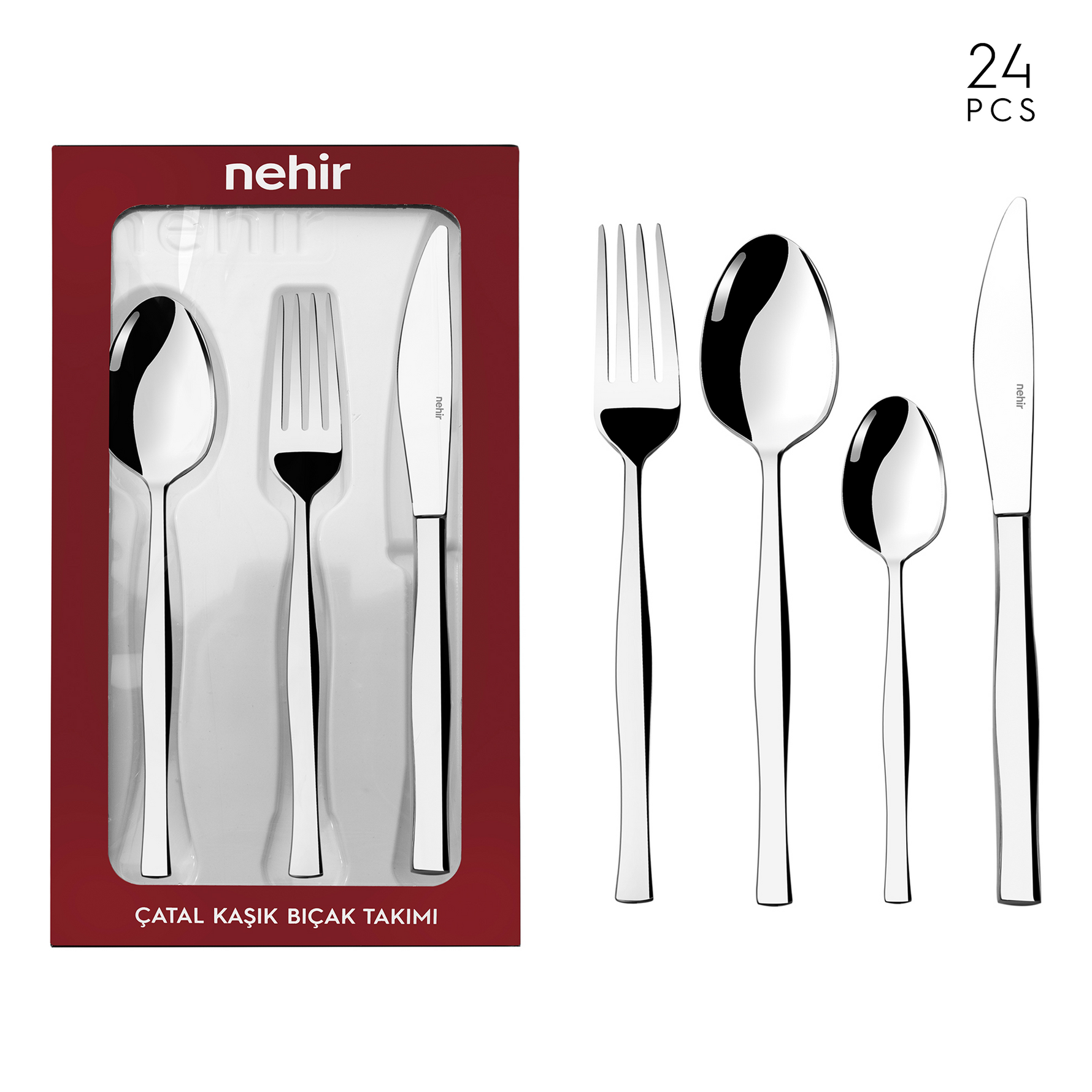 Nehir Zarif Mirror Finish 6-Person 24-Piece Cutlery Set