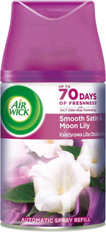 Air Wick Freshmatic Autospray, evinizi sürekli ferahlatmak ve kokuları nötrleştirmek için otomatik olarak sürekli koku patlamaları yayar. Tek bir püskürtme bir odayı doldurmaya yeter ve evinizin her zaman hoş kokmasını sağlar. Hava temizleyiciyi tercih ettiğiniz koku yoğunluğu ayarına getirin ve harika kokunun tadını çıkarın. Düşük ayarda olduğunda her dolumda evinizi 70 güne kadar kokulandırır.