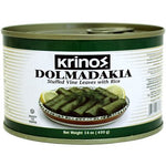 Lif, temel vitamin ve besin maddeleri açısından zengin olan asma yaprakları, Akdeniz mutfağının vazgeçilmezidir. Lezzetli Dolmadakia'mız (dolma yaprak olarak da bilinir) için Yunan üzüm asmalarının en yumuşak yapraklarını özenle seçiyoruz. Krinos dolmaları, pirinç, otlar ve baharatların lezzetli bir karışımıyla doldurulur. Yunan ve Türk meze sofralarının klasik bir parçası olan dolma, Orta Doğu yemeklerinde de popülerdir ve humus, baba ganosh ve zeytinle birlikte tüketilir. Üzerine zeytinyağı ve limon gezdirip servis edebilirsiniz.