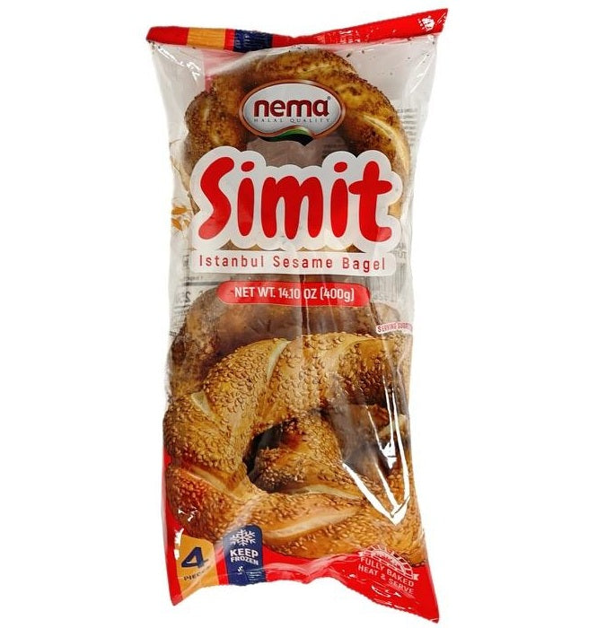 Nema İstanbul Simit (400 gr, 4 adet), kolay saklama ve hazırlama için dondurulmuş ürün olarak da sunulan geleneksel bir Türk susamlı ekmeğidir. Bu simitler yuvarlak, dışı çıtır, içi yumuşak ve nefis bir susam aromasına sahiptir. Dondurulmuş bir ürün olarak, doğrudan dondurulmuş halden pişirerek Türk simidinin gerçek lezzetini evinizde yaşamanızı sağlar. Hızlı bir kahvaltı, atıştırmalık veya öğüne eklemek için mükemmeldir.