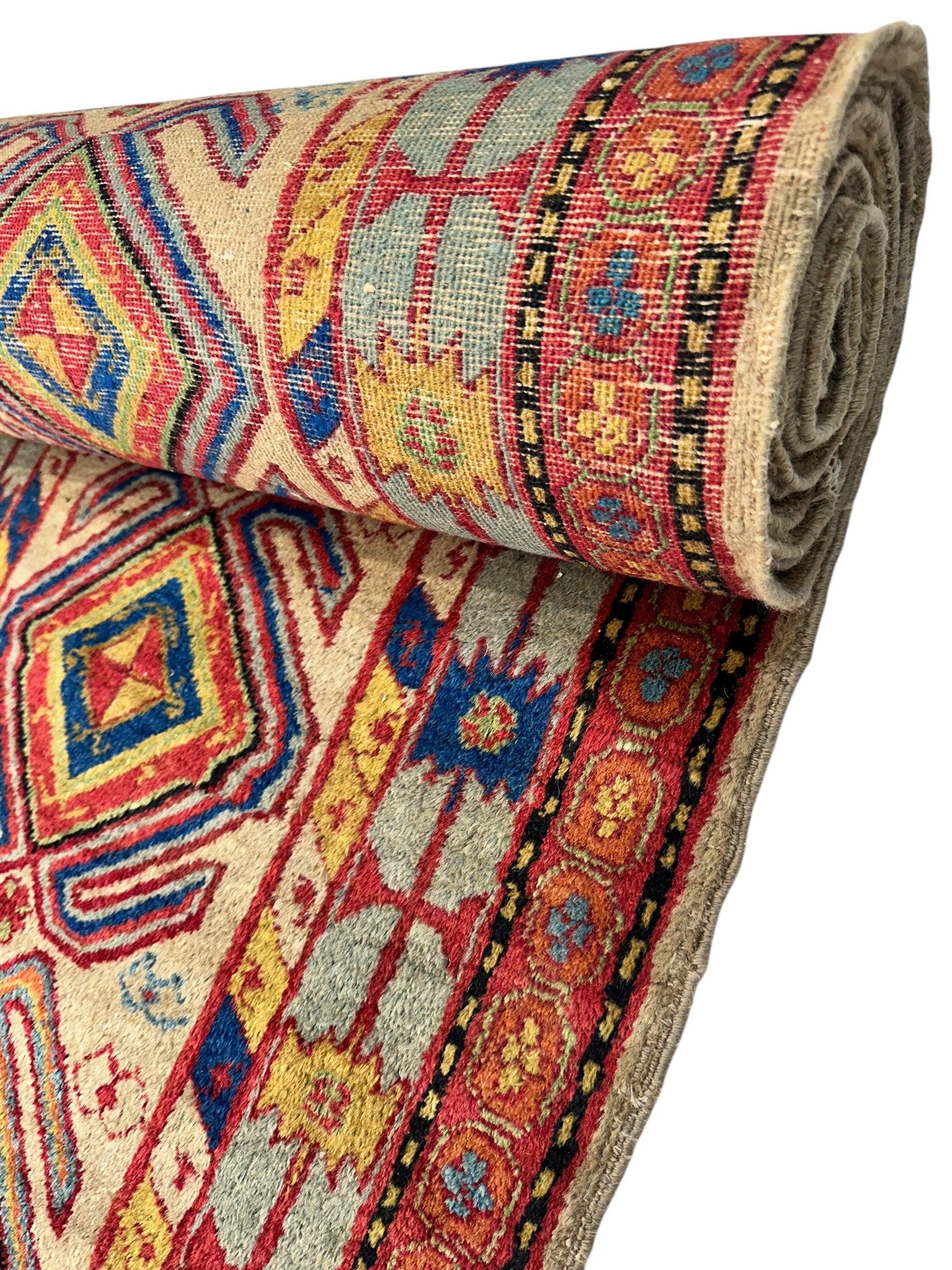 Bu antika Fars Lambran yolluk halısı, zamansız bir güzellik ve işçilik yansıtıyor. 1930'larda elle dokunan halı, geleneksel Fars tasarımının zarafetini yansıtan karmaşık ve simetrik desenlere sahip lüks bir yün havına sahip. Uzun boyutu, onu koridorlar veya geniş, dar alanlar için göz alıcı bir aksesuar haline getiriyor. Halının dayanıklı yapısı ve yumuşak 0,45 inç kalınlığı, gelecek nesiller için de değerli bir merkez parçası olarak kalmasını sağlıyor. Küçük aşınmalar bile özgünlüğünü ve antika mirasını vurguluyor.