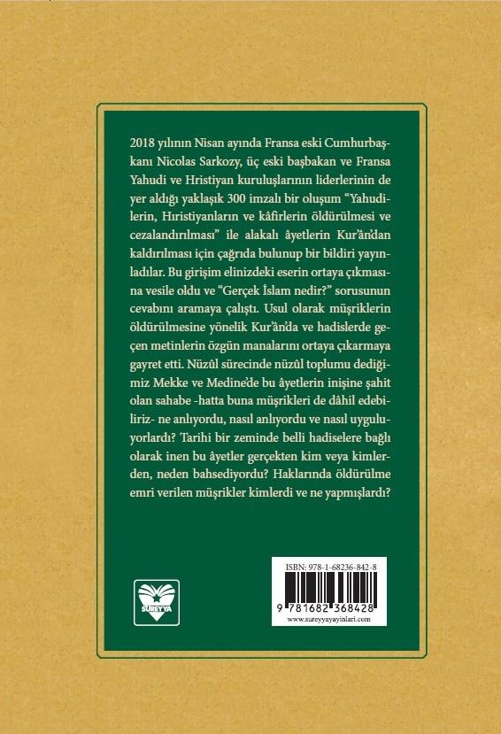 2018 yılının Nisan ayında Fransa eski Cumhurbaşkanı Nicolas Sarkozy, üç eski başbakan ve Fransa Yahudi ve Hristiyan kuruluşlarının liderlerinin de yer aldığı yaklaşık 300 imzalı bir oluşum “Yahudilerin, Hıristiyanların ve kâfirlerin öldürülmesi ve cezalandırılması” ile alakalı âyetlerin Kur’ân’dan kaldırılması için çağrıda bulunup bir bildiri yayınladılar. Bu girişim elinizdeki eserin ortaya çıkmasına vesile oldu ve “Gerçek İslam nedir?” sorusunun cevabını aramaya çalıştı. Usul olarak müşriklerin öldürülmesine yönelik Kur’ân’da ve hadislerde geçen metinlerin özgün manalarını ortaya çıkarmaya gayret etti. Nüzûl sürecinde nüzûl toplumu dediğimiz Mekke ve Medine’de bu âyetlerin inişine şahit olan sahabe -hatta buna müşrikleri de dâhil edebiliriz- ne anlıyordu, nasıl anlıyordu ve nasıl uyguluyorlardı? Tarihi bir zeminde belli hadiselere bağlı olarak inen bu âyetler gerçekten kim veya kimler- den, neden bahsediyordu? Haklarında öldürülme emri verilen müşrikler kimlerdi ve ne yapmışlardı