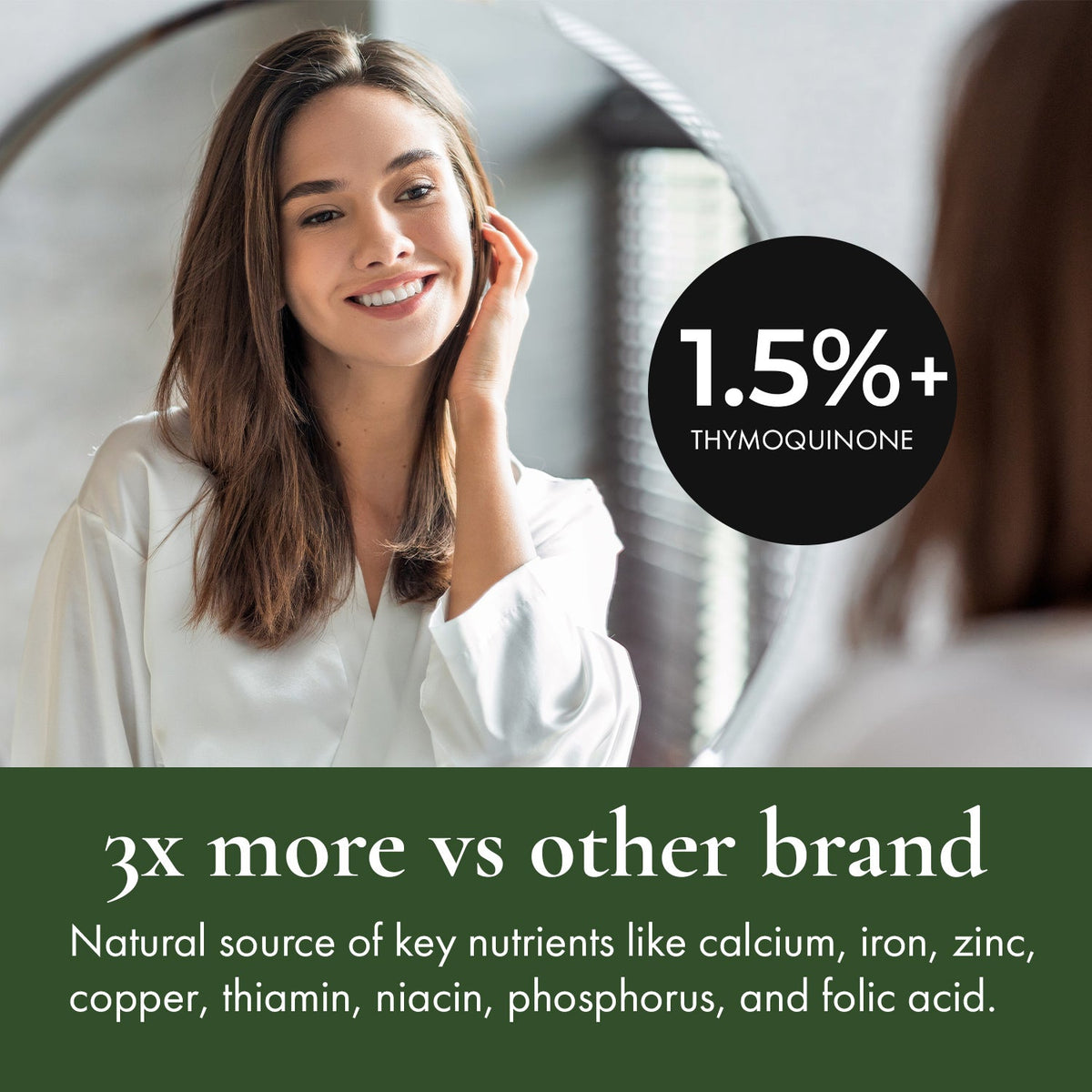 • Saç, cilt ve tırnaklar için harika, doğal olarak timokinon içerir.