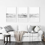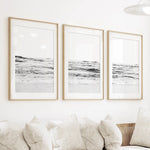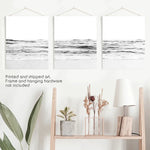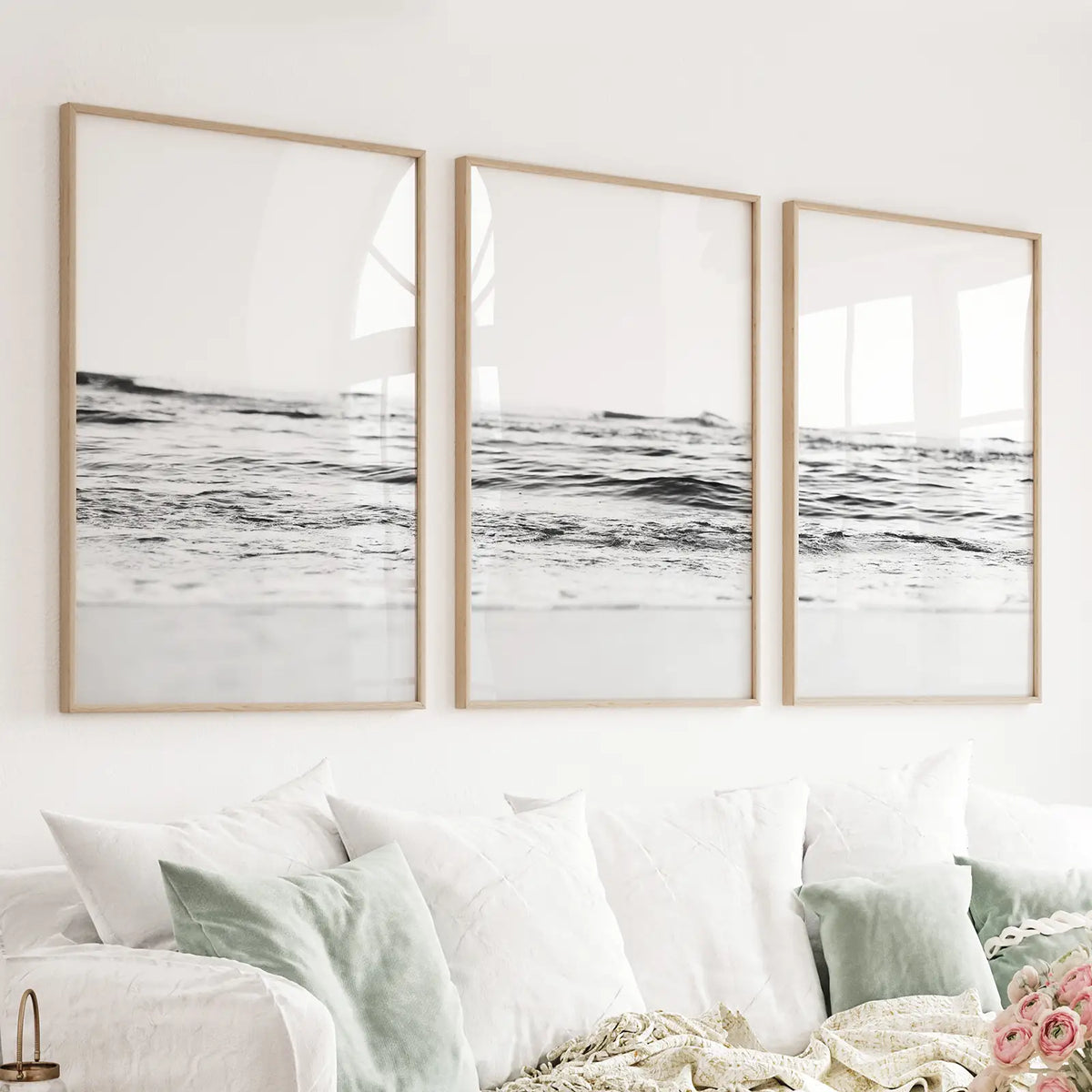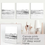 Siyah Beyaz Minimalist Plaj Dalgası Duvar Sanatı. 3 Parçalı Dekor