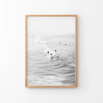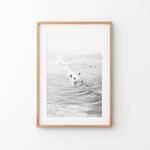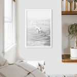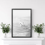 Dalgalar Üzerinde Siyah Beyaz Sörfçüler Duvar Sanatı Baskısı