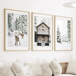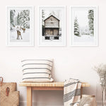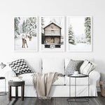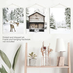 Noel Temalı Duvar Sanatı Seti. Ren Geyiği, Kütük Ev, Orman
