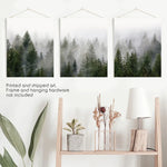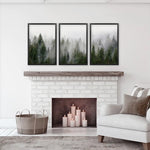Yeşil Çam Ağacı Ormanı. Sisli Doğa Duvar Sanatı Baskıları