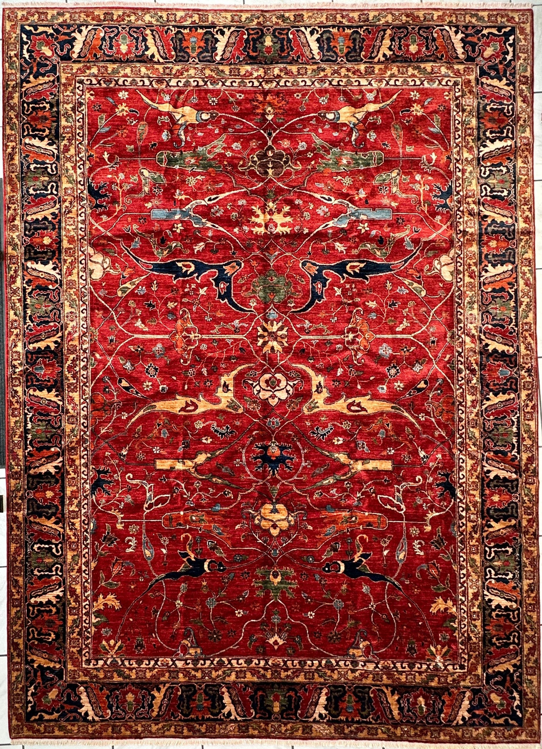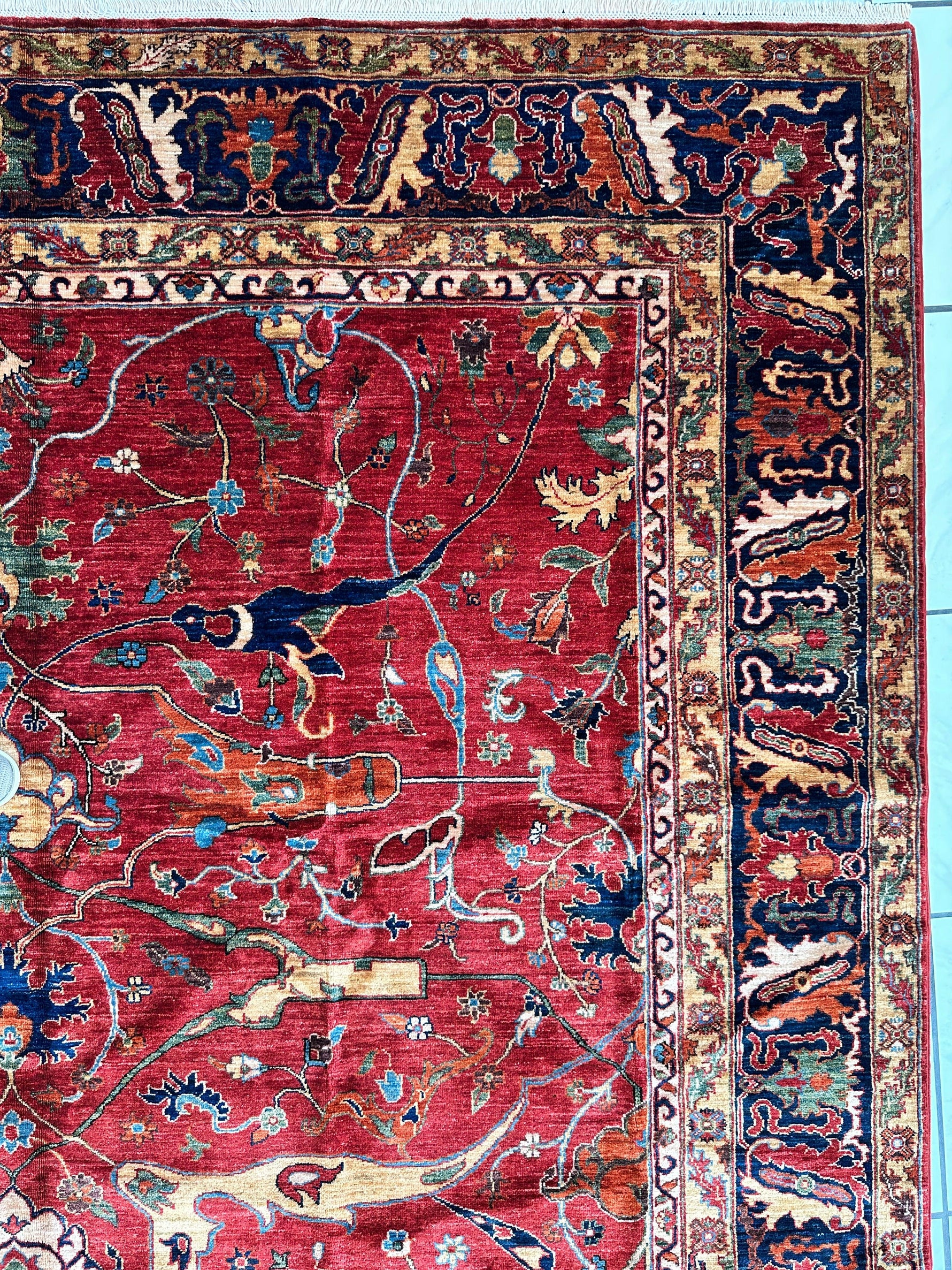 El Dokuma Afgan Bidjar Yün Halısı – 2,7x3,6 m – Karmaşık Geometrik ve Çiçek Motifleri