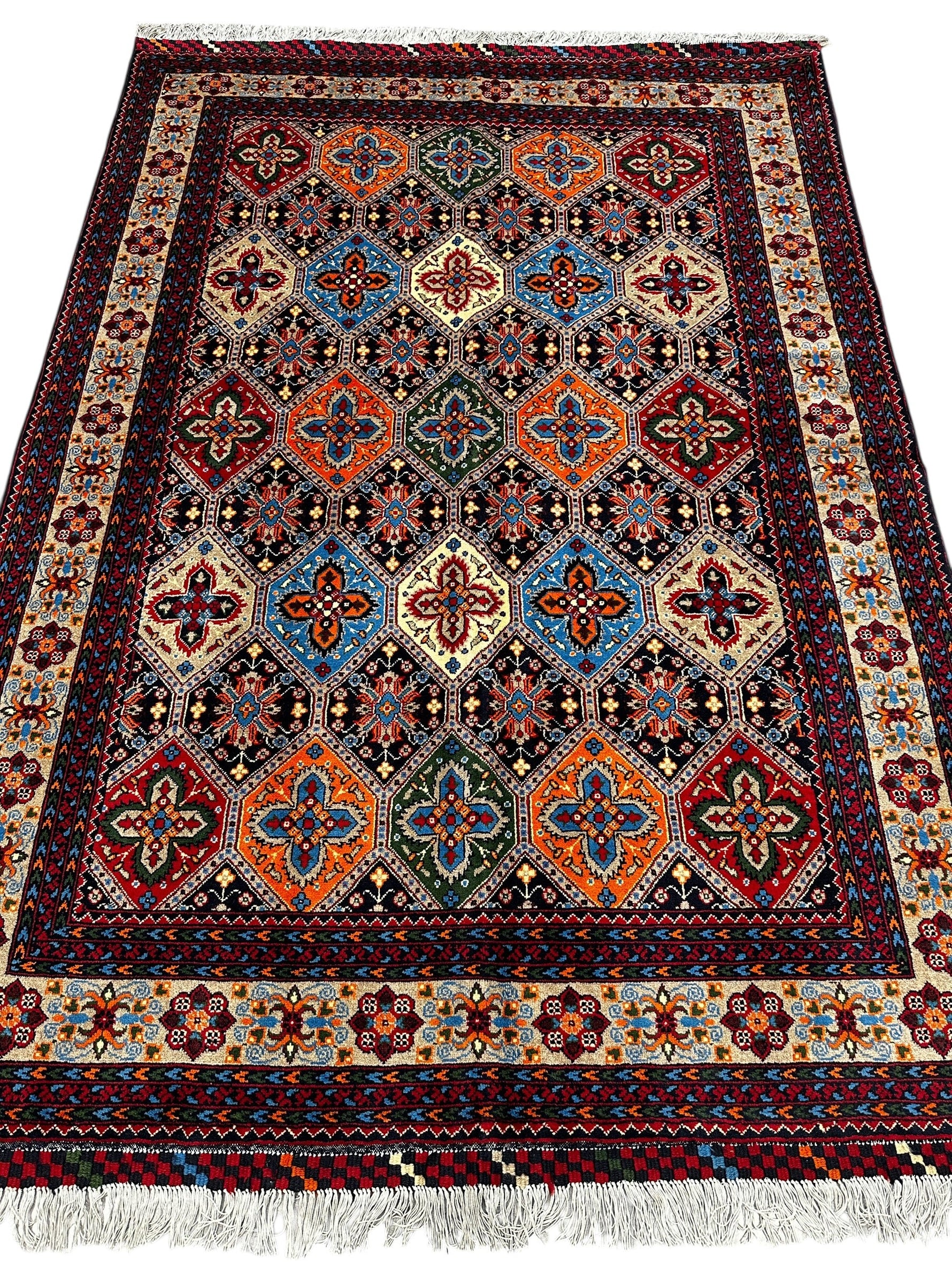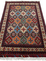 Bu el dokuması kaşi halısı, zengin renk tonları ve geleneksel Afgan dokumasıyla öne çıkıyor. Pamuklu bir zemin üzerine yüksek kaliteli yünden üretilen bu halı, hem şıklık hem de dayanıklılık sunuyor. Girişlere, oturma odalarına veya çalışma odalarına karakter ve doku katmak için ideal.