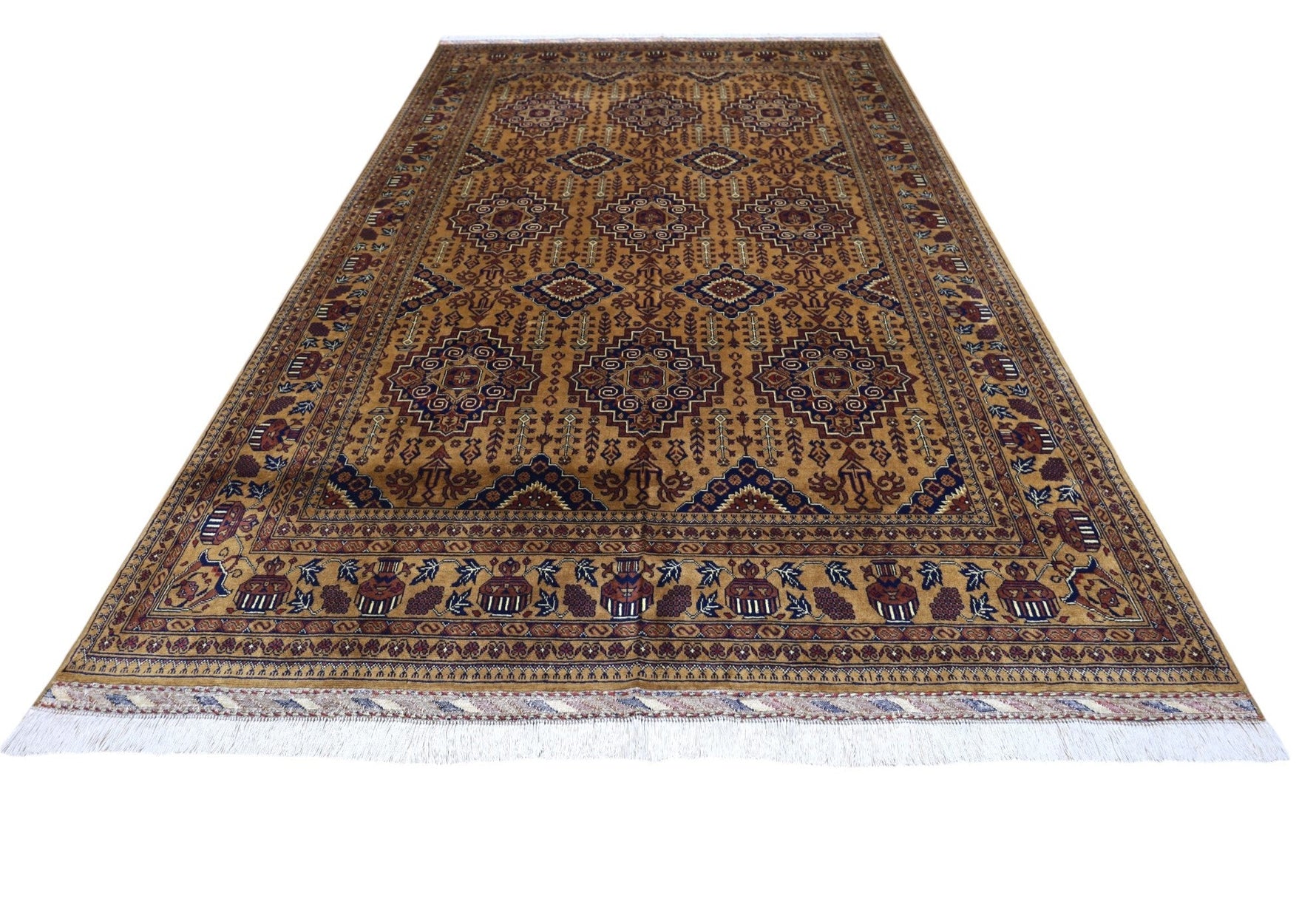 El Dokuma Afgan Zerkhaki Yün Halı – 6'7″ x 10'2″
